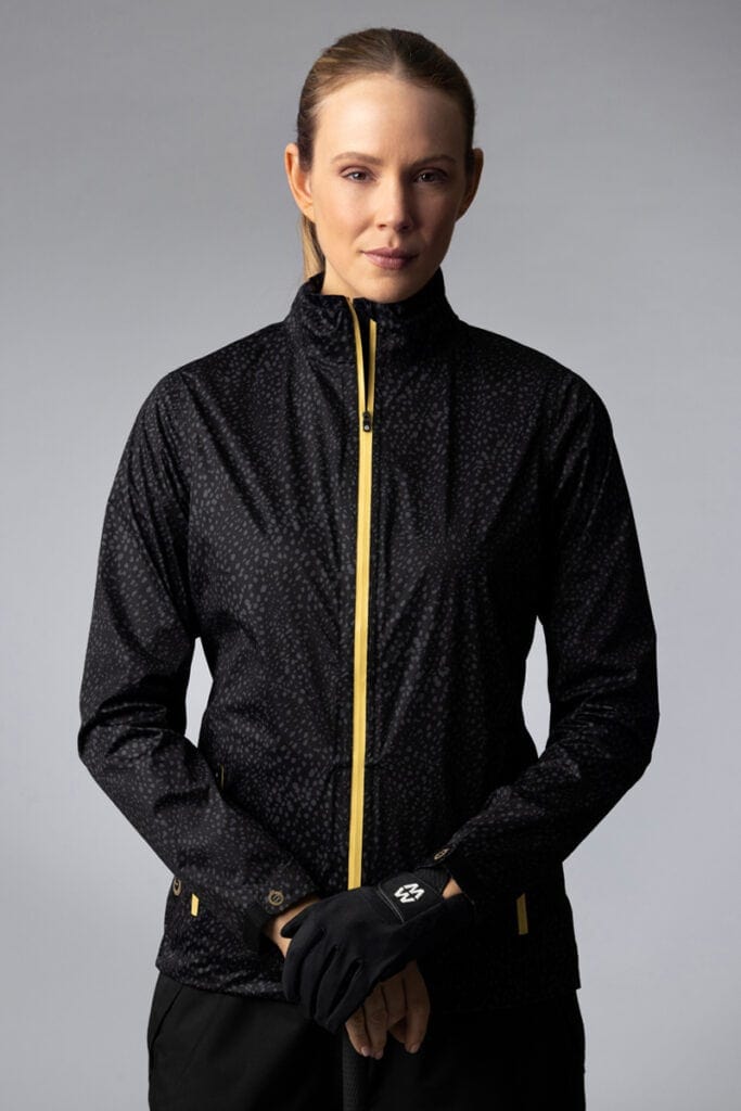 WhisperDry Tech-Lite Waterproof Jacket in Black Cheetah/Gold