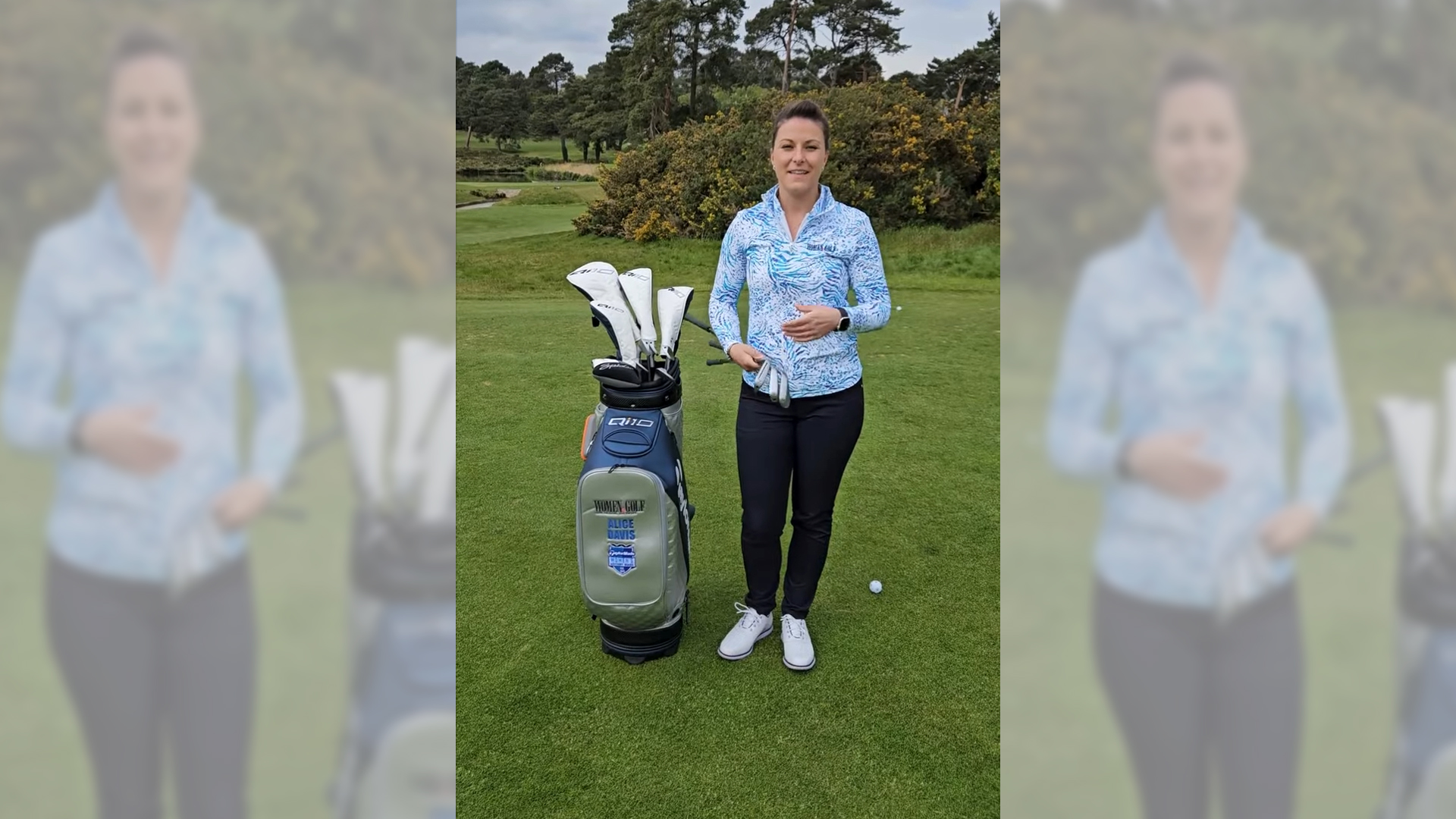 When Alice uses the seven iron, you will see that the ball bumped on the front of the green at 25% of the way and rolled out the rest of the way finishing around the hole. With the second and third shots with the nine iron and the sand wedge, the ball stopped a lot quicker than the shot that Alice took with the seven iron. The aim is to land the ball on the front of the green and watch it release towards the hole.
