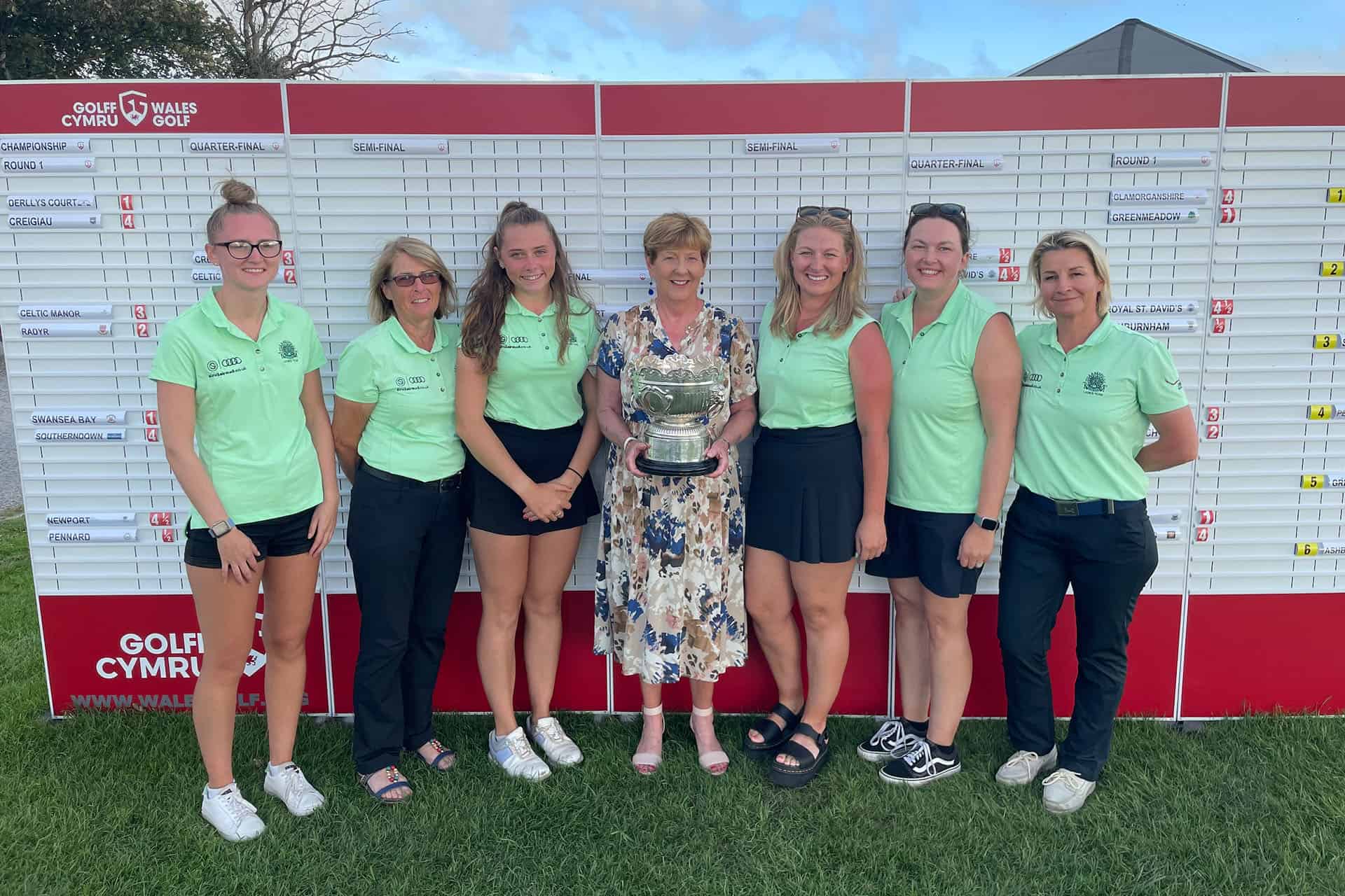 With the Vineall sisters, Megan and Ffion, both winning well at the bottom of the order for Newport, the decisive match was the middle one where Cerys Mitchell got off her sick bed to win the game on the 18th hole against Lottie Raymond, two up, and take the title.