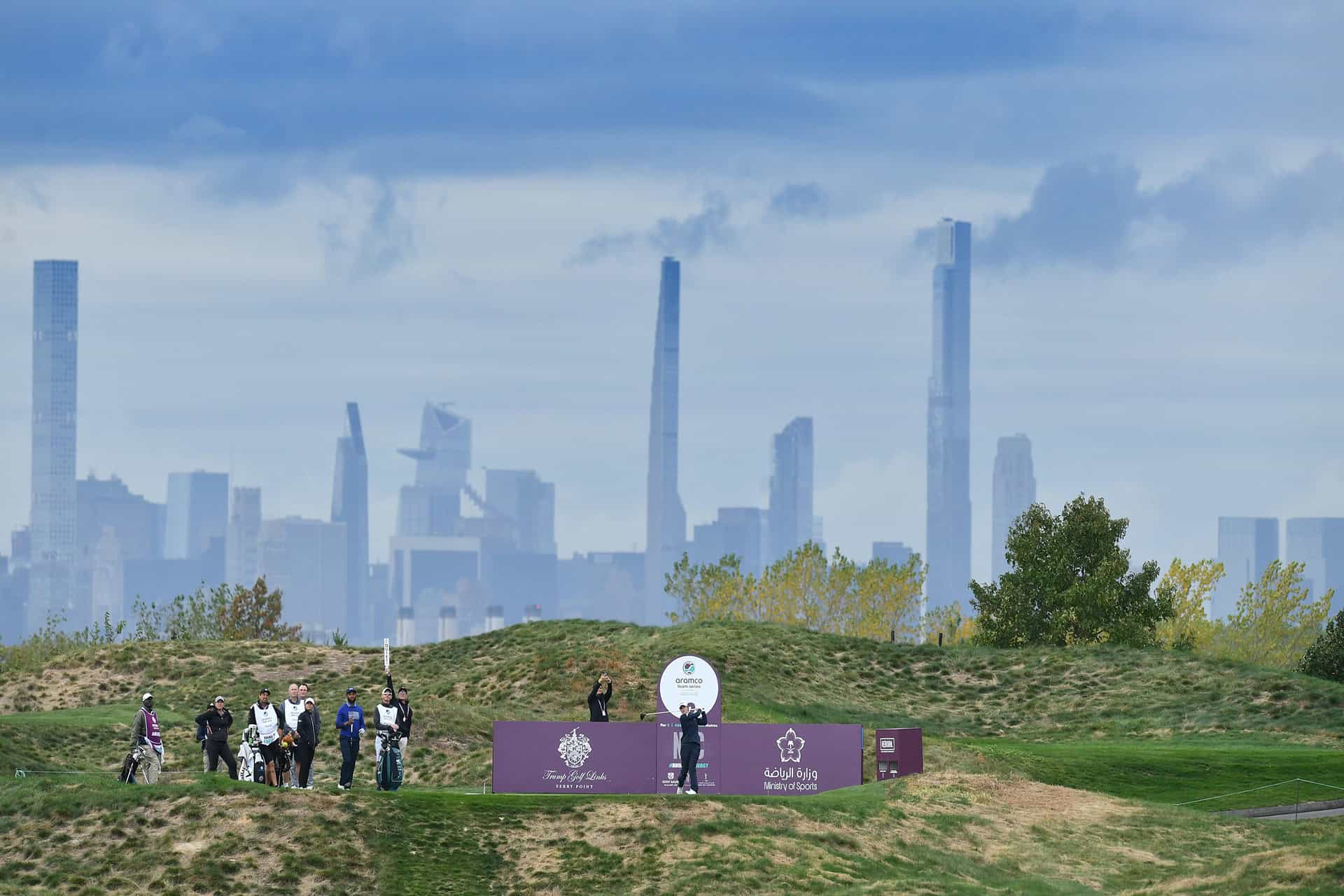 On a tough and testing day at the Aramco Team Series – New York, Leona Maguire, Liz Young, Tvesa Malik and amateur Golden Tate joined forces to reach a total of 11-under-par at Trump Golf Links at Ferry Point.