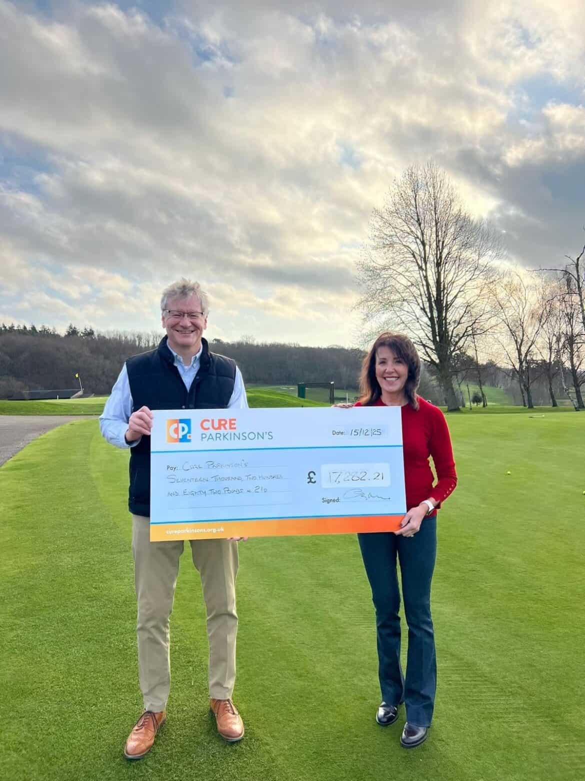 To mark the achievement, Cure Parkinson’s chair of trustees Mike Ashton visited Harewood Downs to receive the cheque in person.