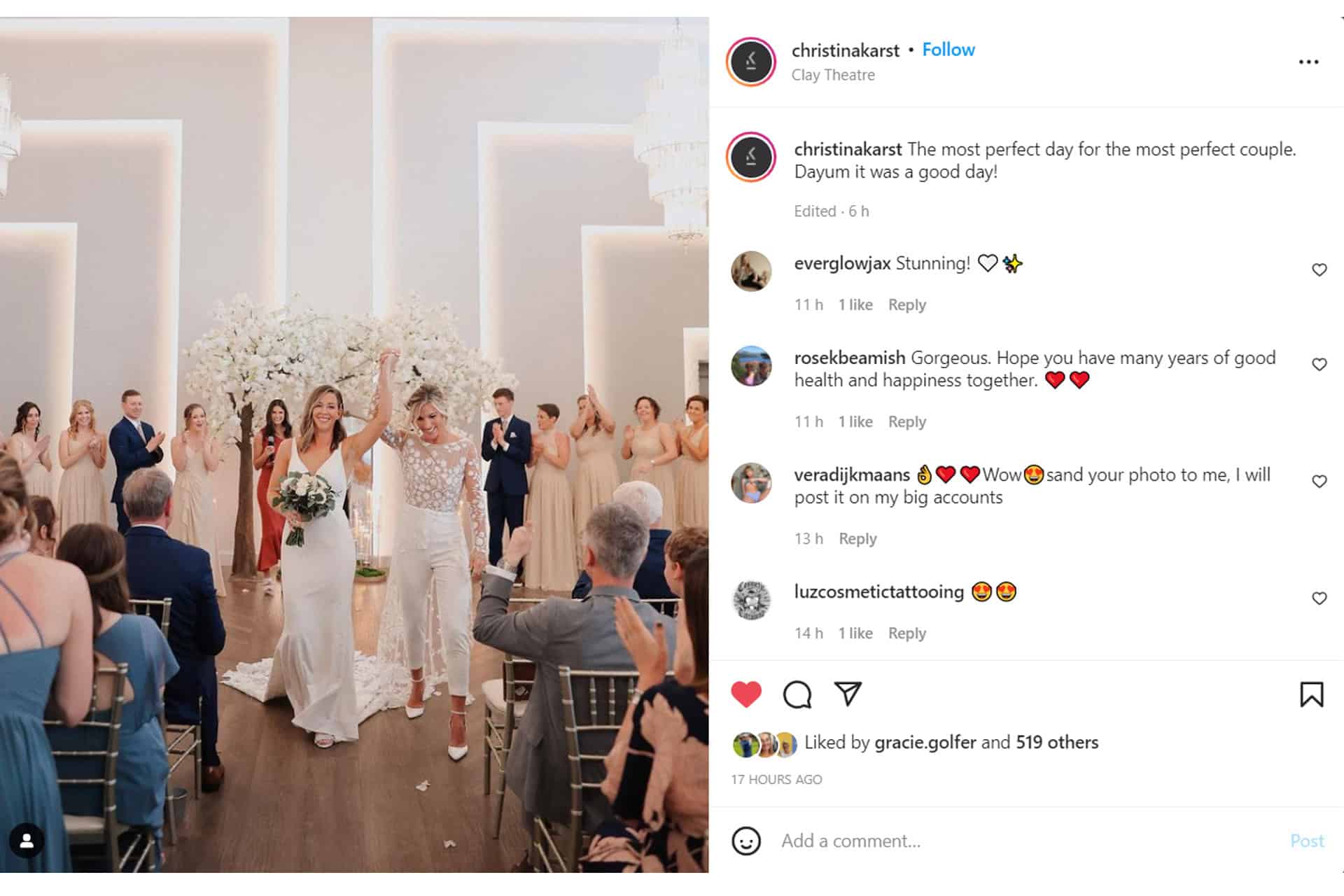 The picture below was shared by the happy couple’s photographer Christina Karst on her Instagram.