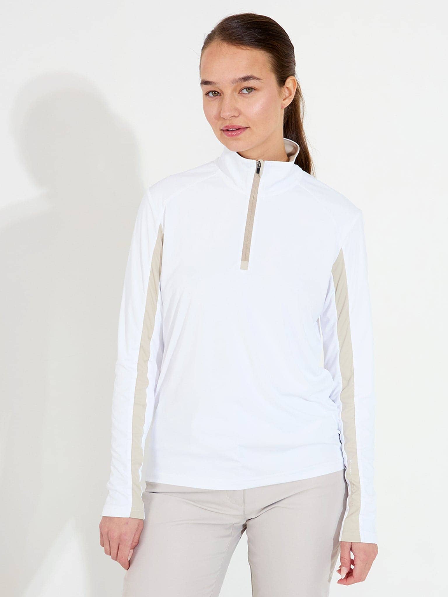 This longsleeve adapts to changing conditions throughout the year. It works as a base layer in cooler weather and provides sun protection when temperatures rise. The stretch fabric moves with your swing while regulating temperature.
