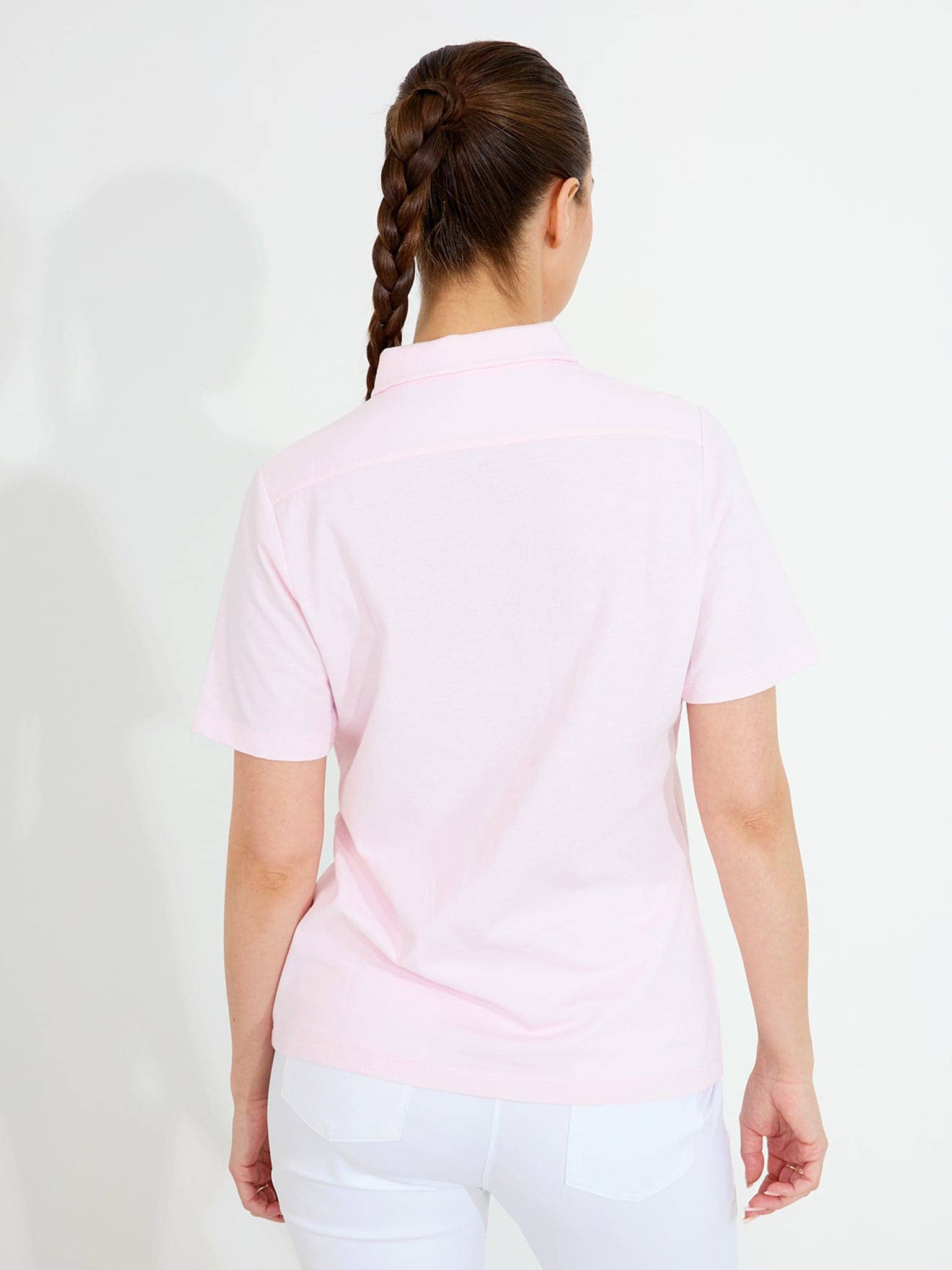 This golf polo delivers the polished look of classic cotton piqué with the performance benefits of modern athletic wear. It’s designed to keep you comfortable from the first tee through the 19th hole.