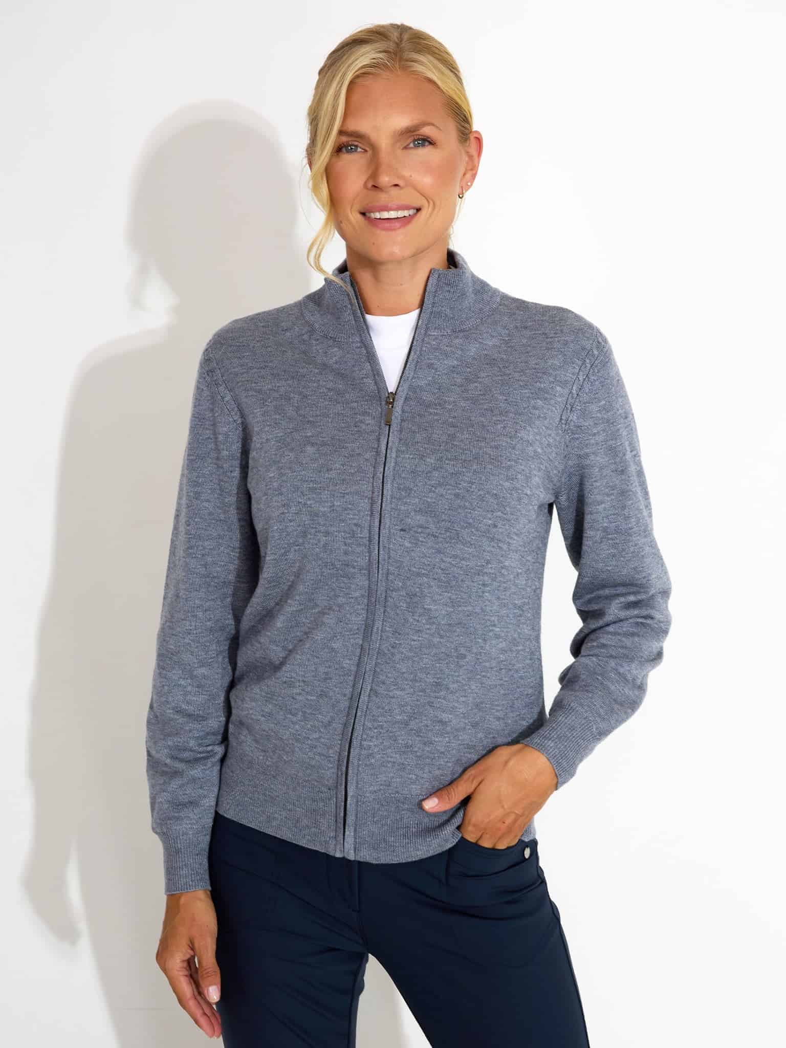 The high collar and full-length zip provide additional coverage when you need it. Crafted from a merino wool blend with braided detailing at the shoulders for a understated finishing touch.