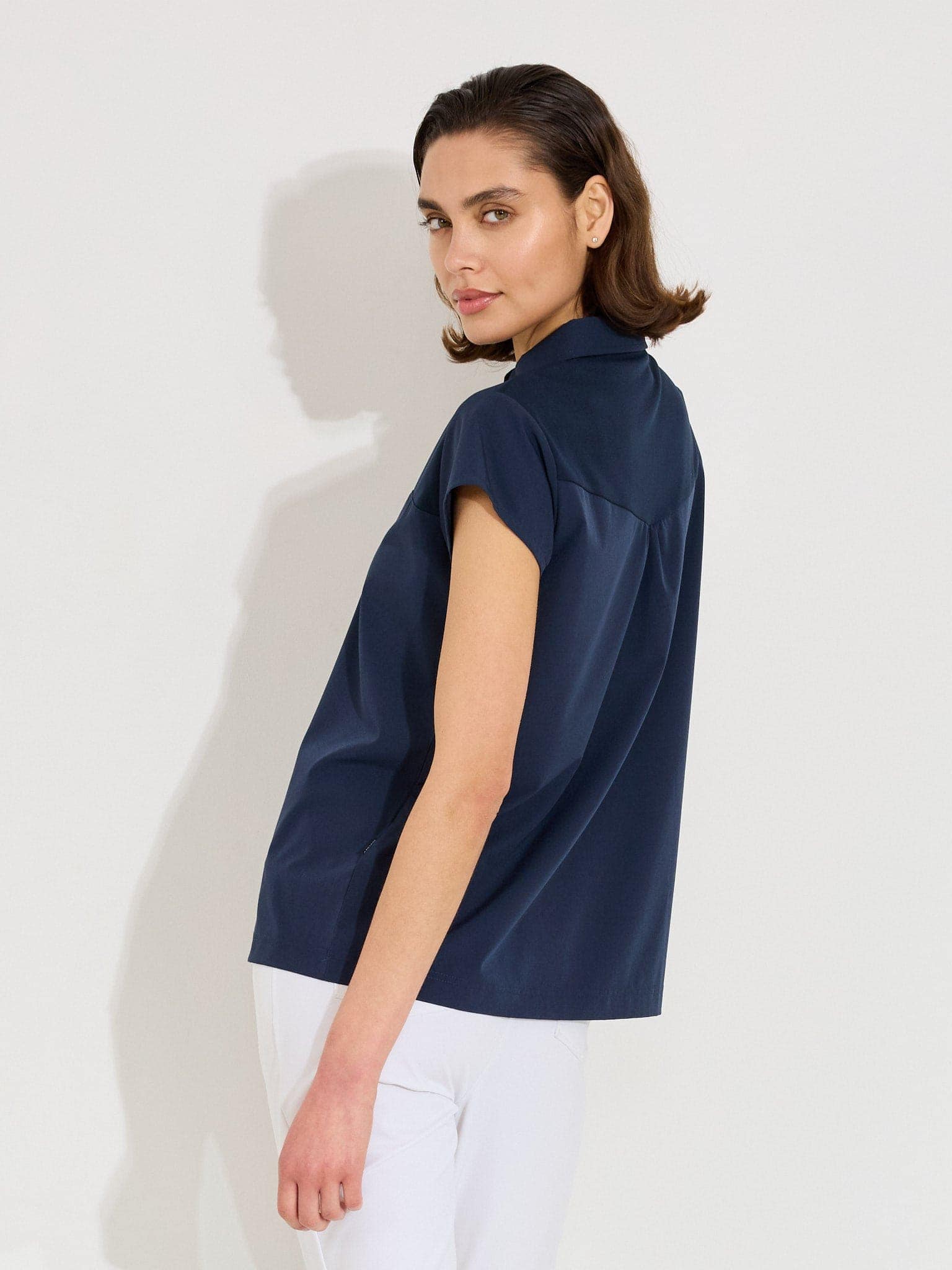 This cupsleeve top handles hot days on the golf course with lightweight fabric that lets air flow through. The design adds stretch where you need it most for unrestricted movement. Clean lines keep the look minimal and fresh.