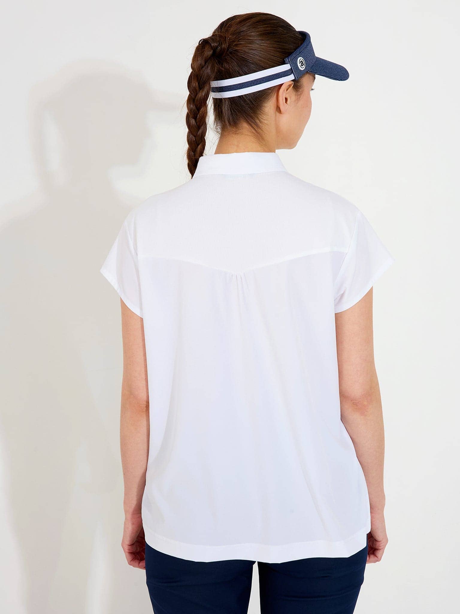 This sleeveless top handles hot days on the golf course with lightweight fabric that moves with you. The loose fit and strategic stretch placement keep you comfortable from first swing to final putt.