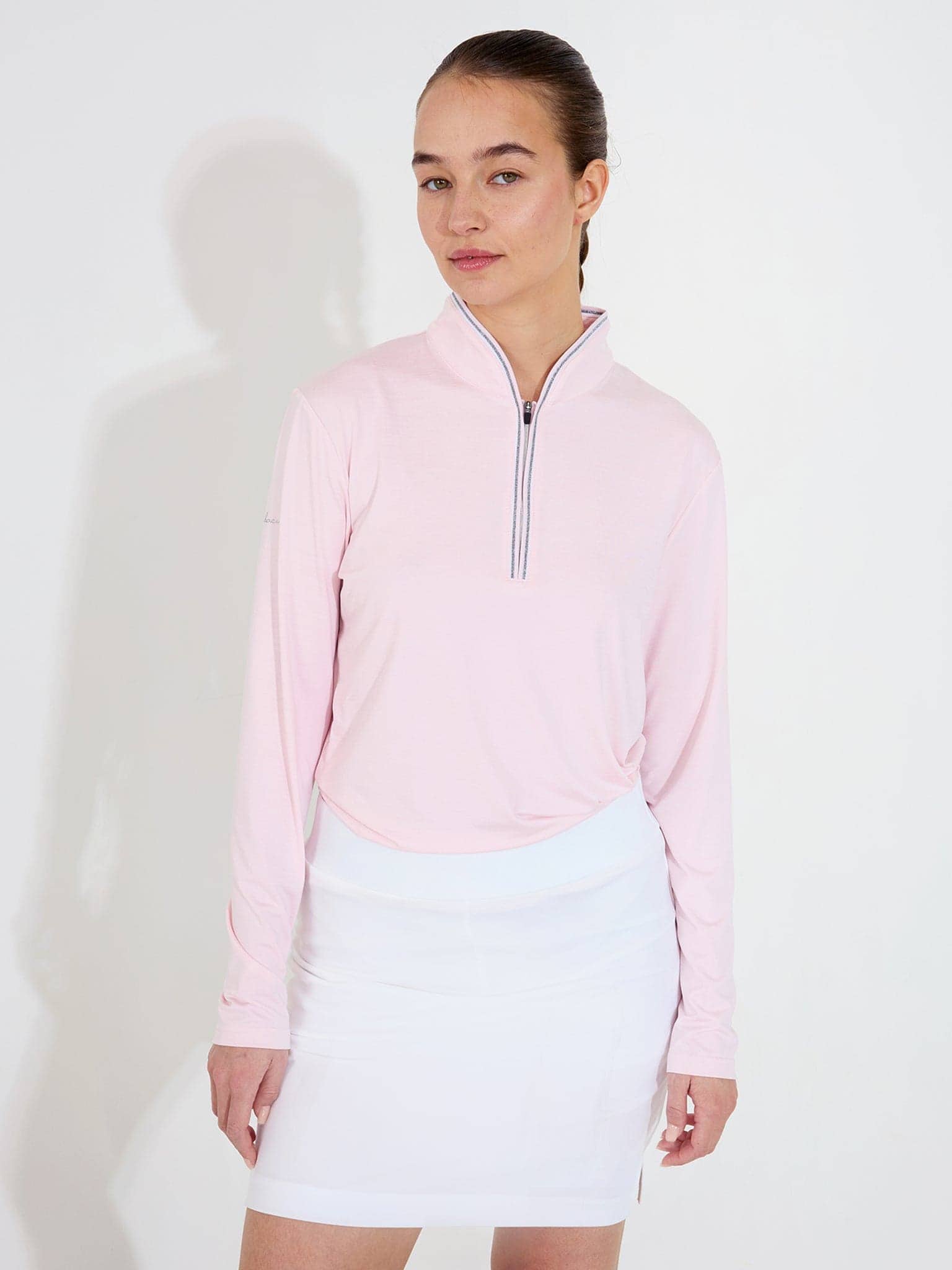 This longsleeve top combines feminine styling with athletic performance for active wear that works on and off the course. The soft, flexible fabric moves with your body while managing heat and moisture. Clean lines and subtle contrast trim create a refined look that pairs well with skirts or trousers.