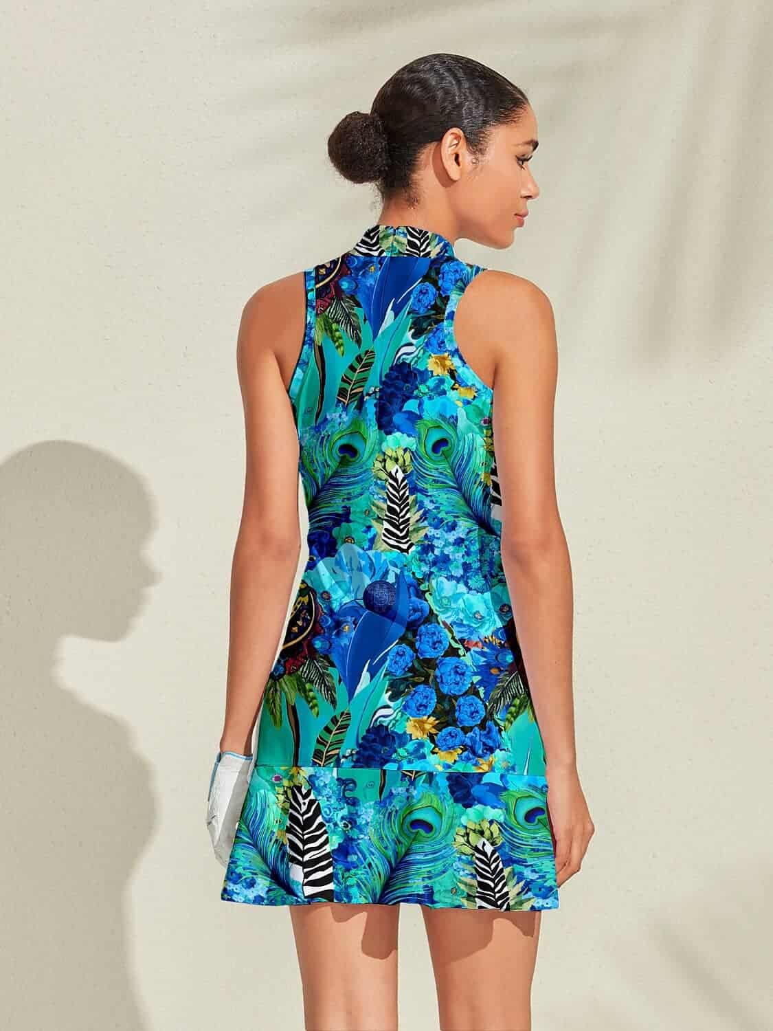Acegolfs Hyped-up Tropical Ruffle 35.5 Inch Dress For Golf Pickleball & Tennis