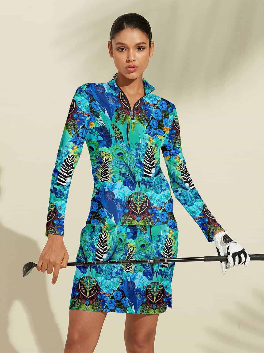 Acegolfs Hyped-up Tropical Silky Golf Shirt Quarterzip UPF50+