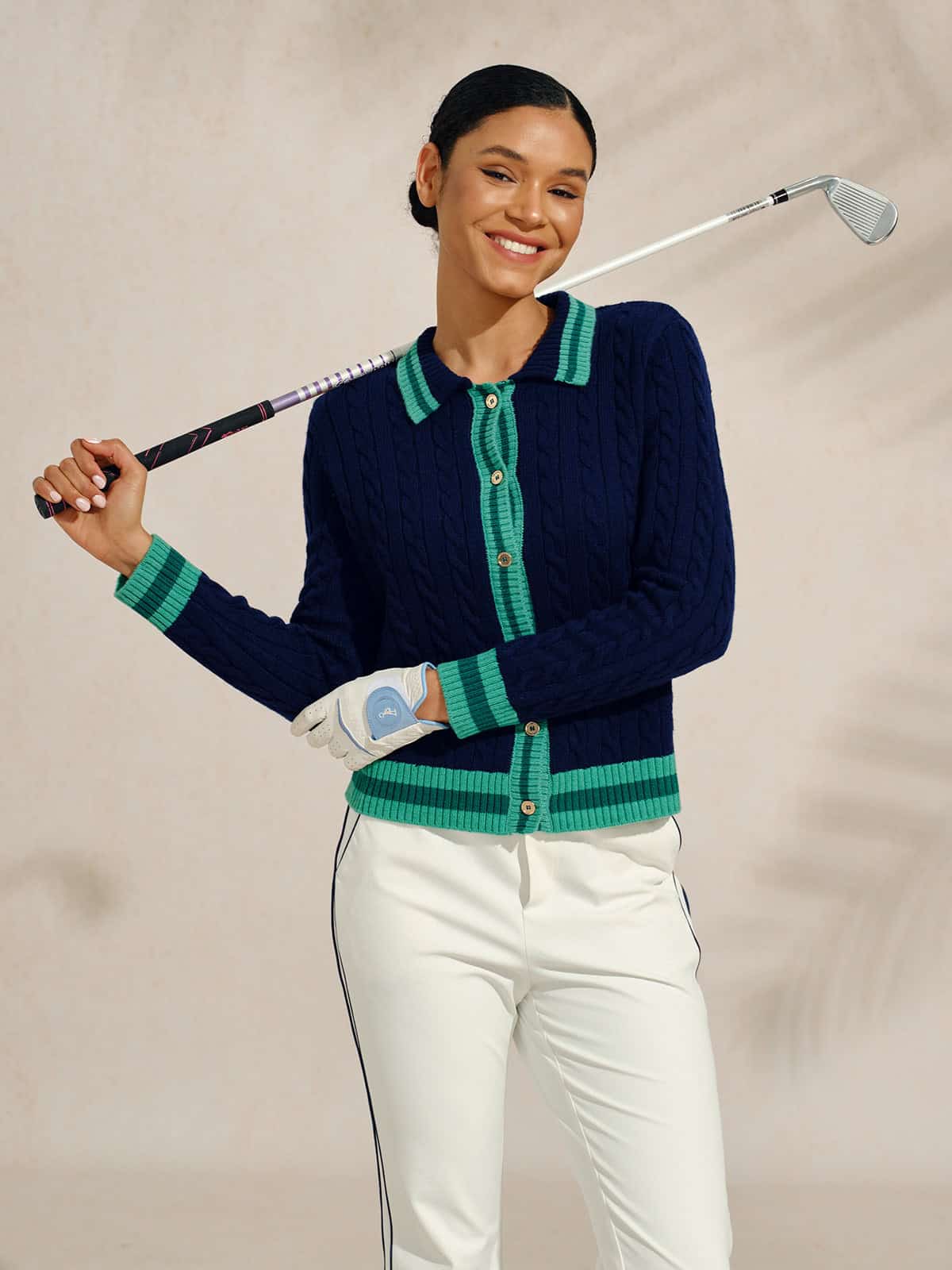 Acegolfs Navycore Colorblock Cable Knit Cardigan