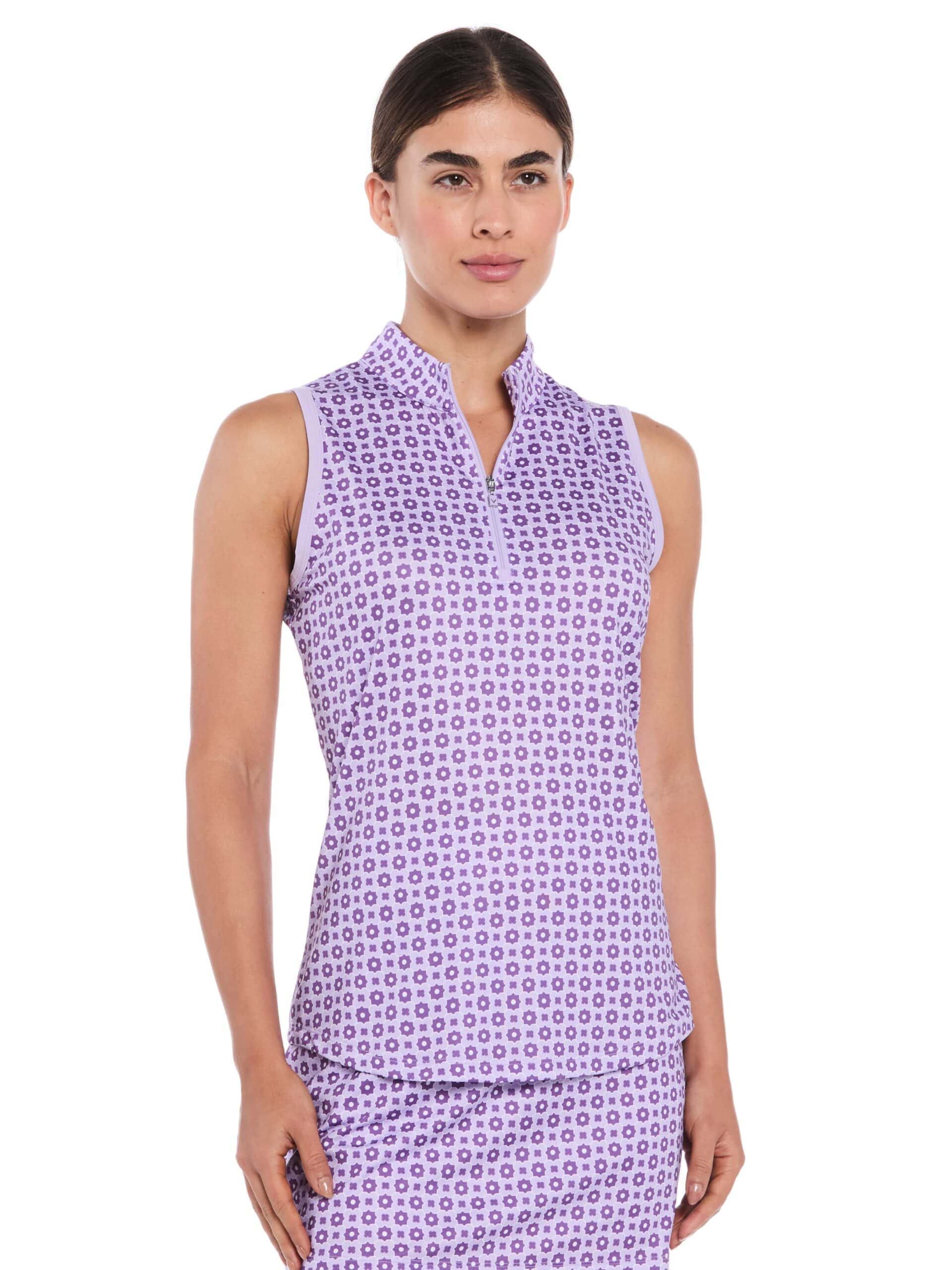 Callaway Womens Geo Print Zip Neck Golf Polo