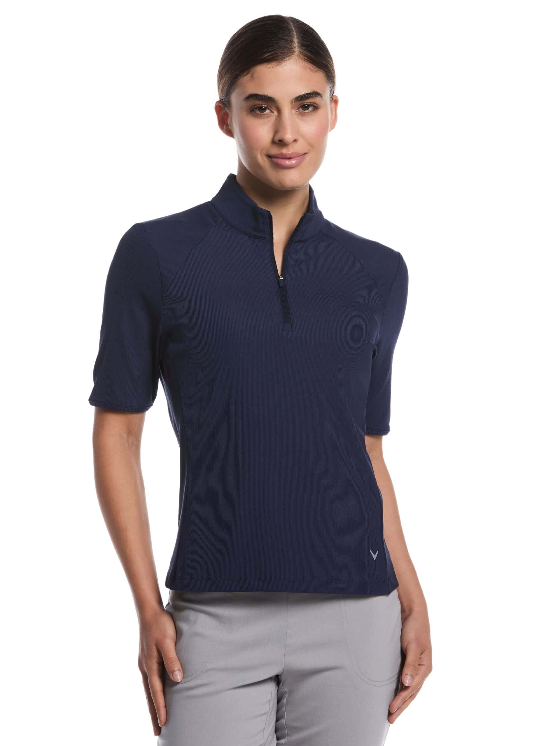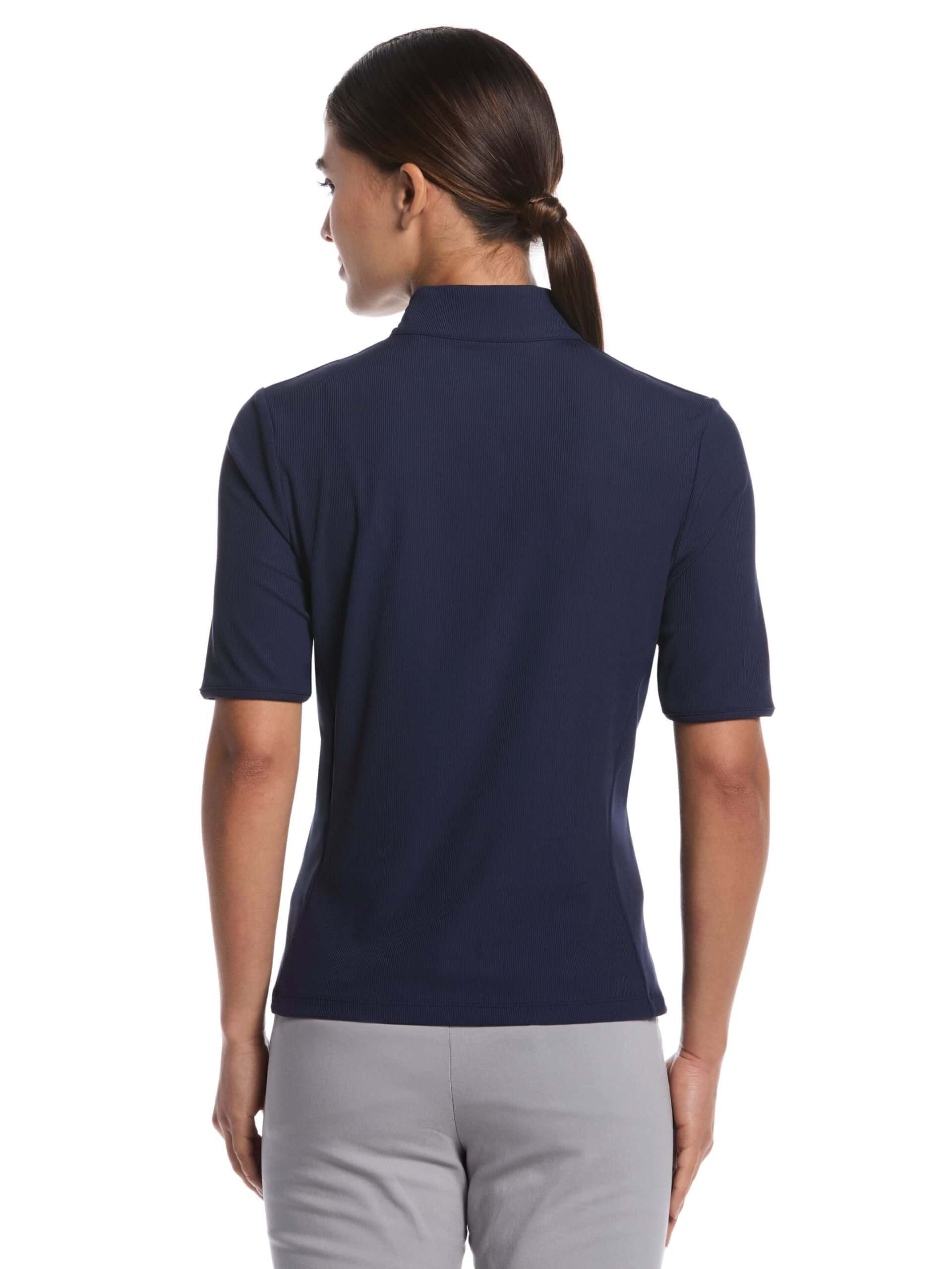 This golf polo combines comfort and function for on-course performance. The mock neck design and textured detailing create a polished look that works from tee to clubhouse.