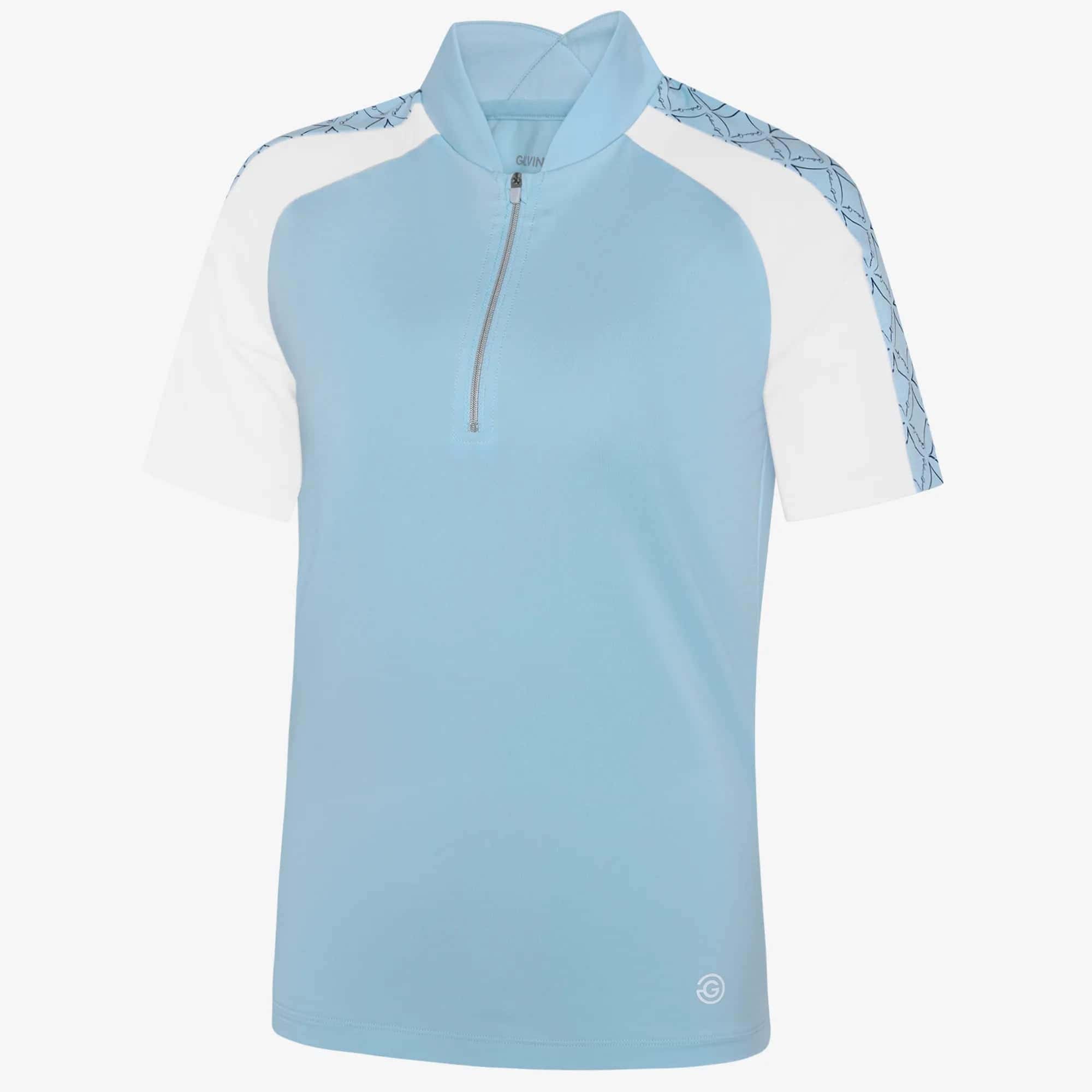 The Miley golf shirt combines athletic performance with clean design details. Its silver zip front and raglan sleeves create a sporty silhouette, while white sleeve panels add visual interest. Built for movement and comfort on the course.