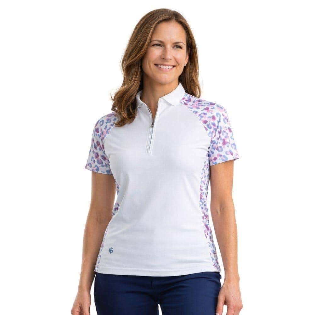 - Transitions from course to casual wear with leopard print accents that add style to the classic polo design