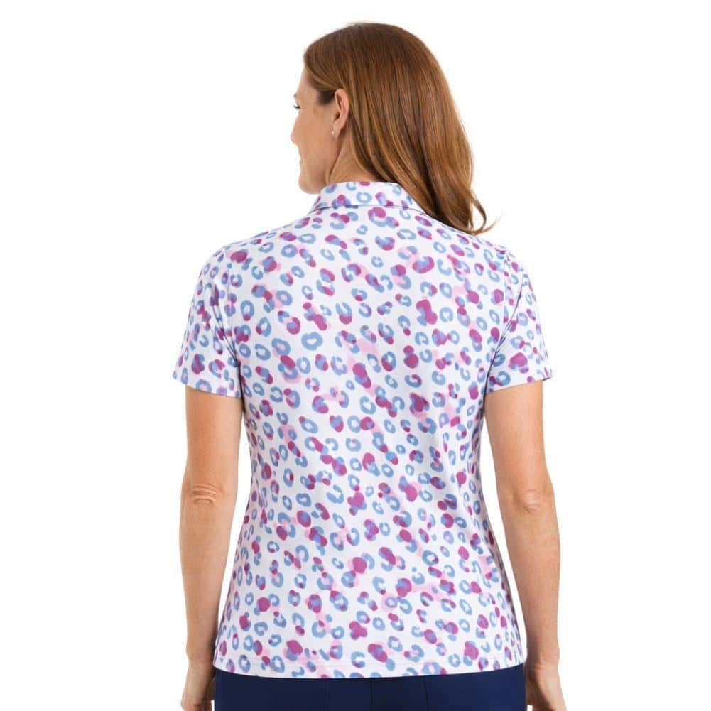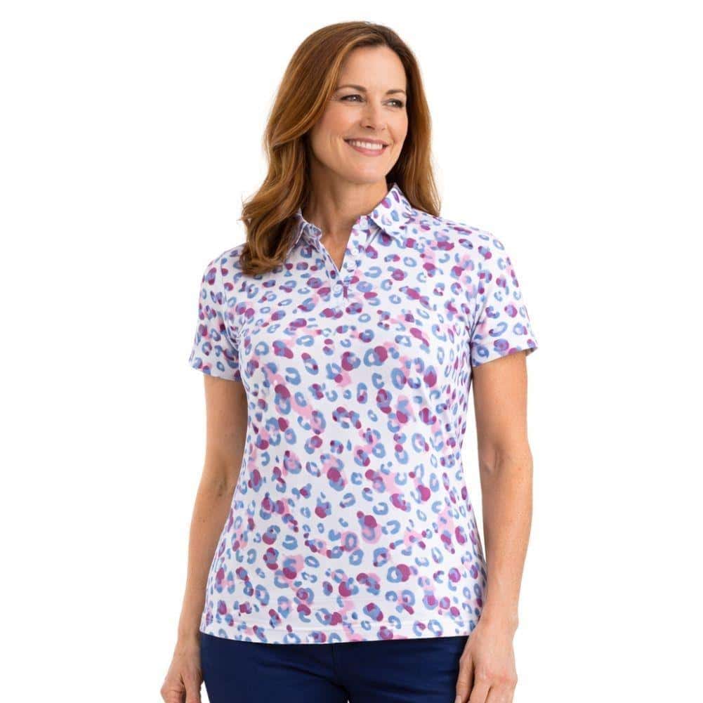 This golf polo combines stretch fabric with moisture-wicking technology for comfortable play in warm weather. The all-over leopard print adds bold style while maintaining a clean, structured look. Built for both on-course performance and off-course wear.