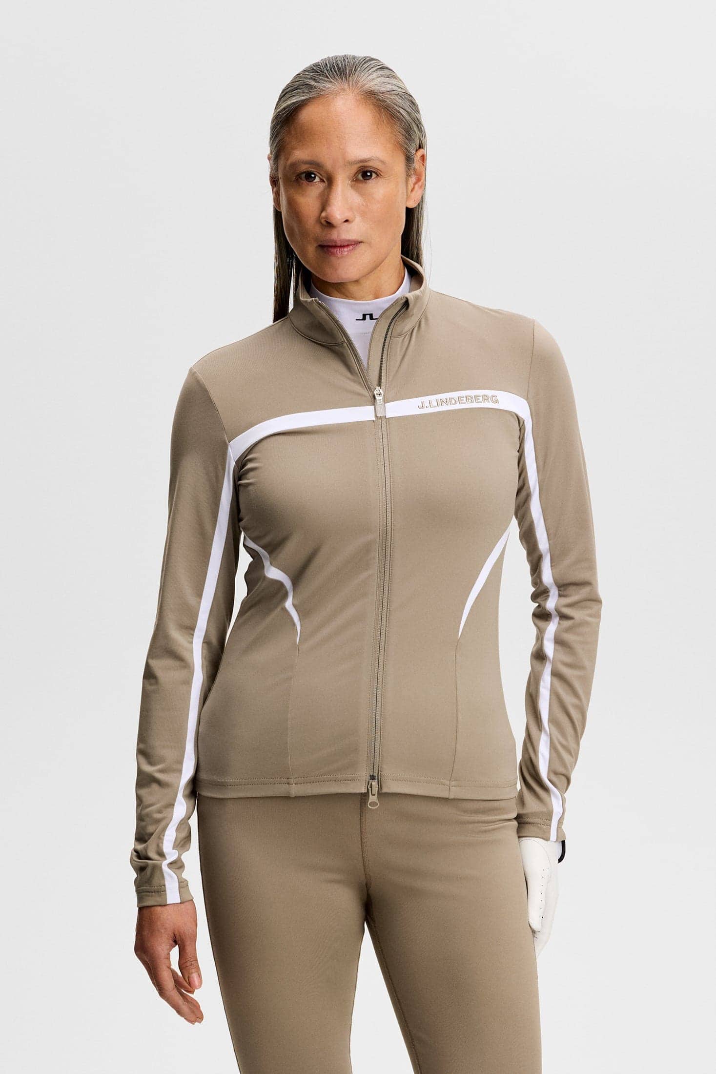 The Janice Mid Layer combines a clean silhouette with functional performance features. Its stretch fabric and lightweight construction make it suitable for both active pursuits and casual wear.