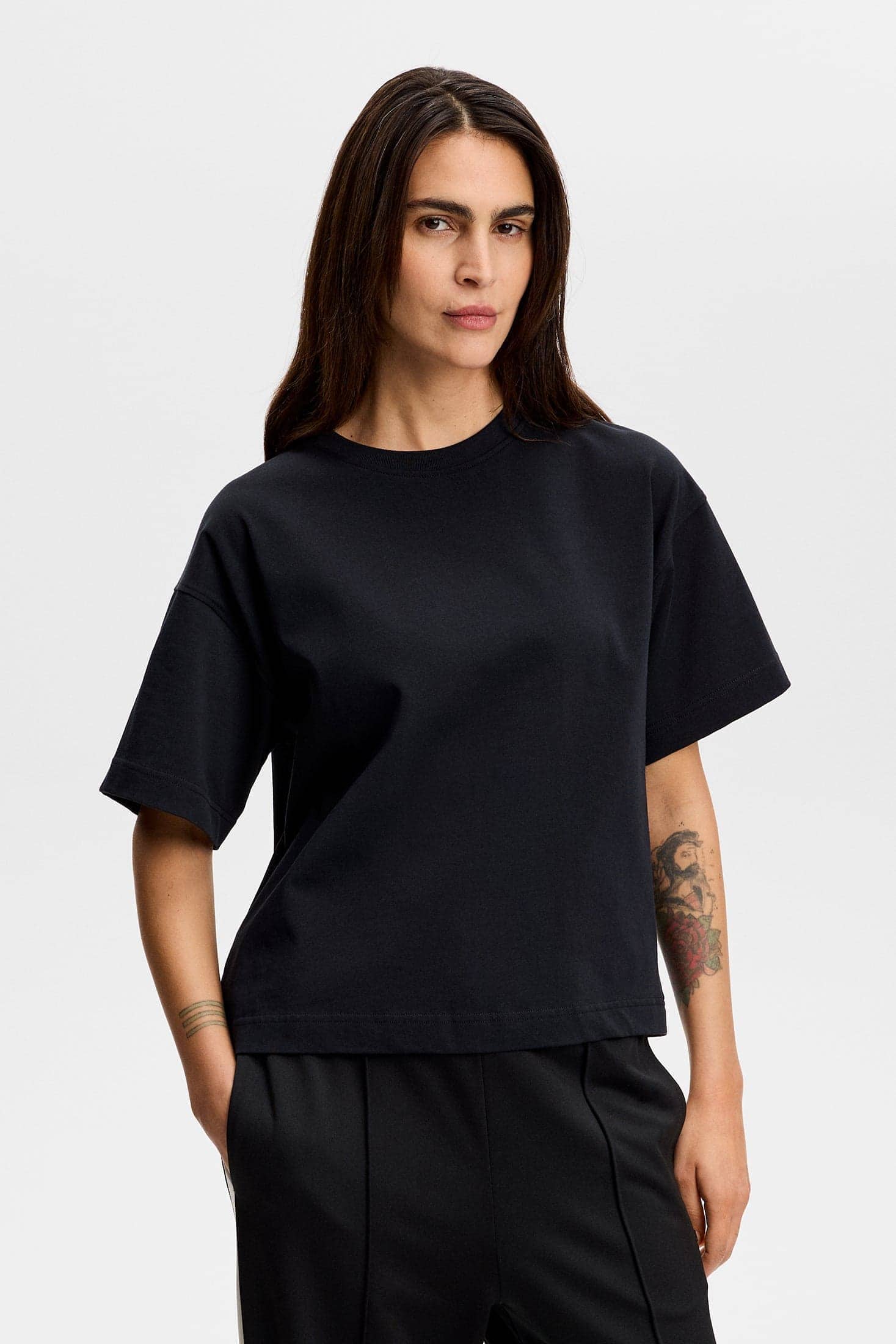 The Lilly Boxy T-shirt offers a relaxed fit with clean lines that work with multiple outfits. Made from soft cotton, it provides comfort and versatility for everyday wear.