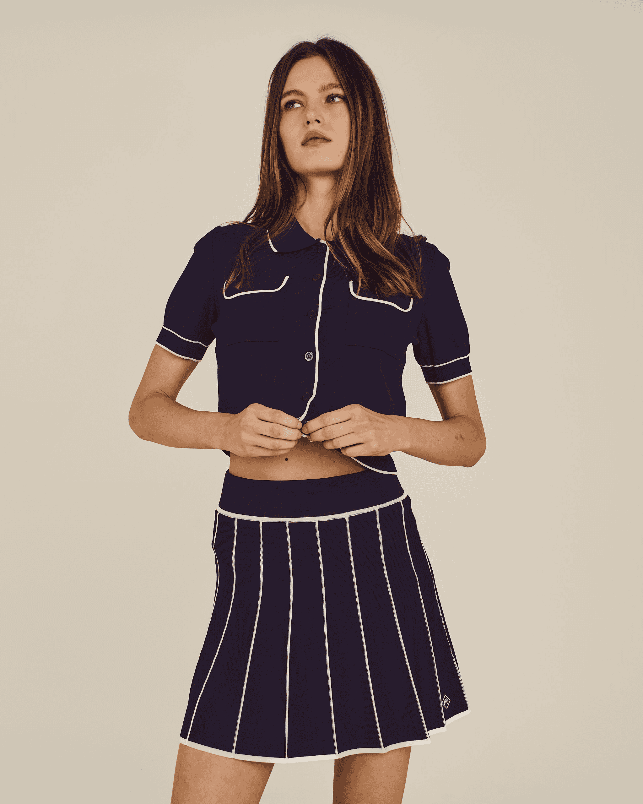 - Classic pleating adds feminine detail while maintaining athletic functionality