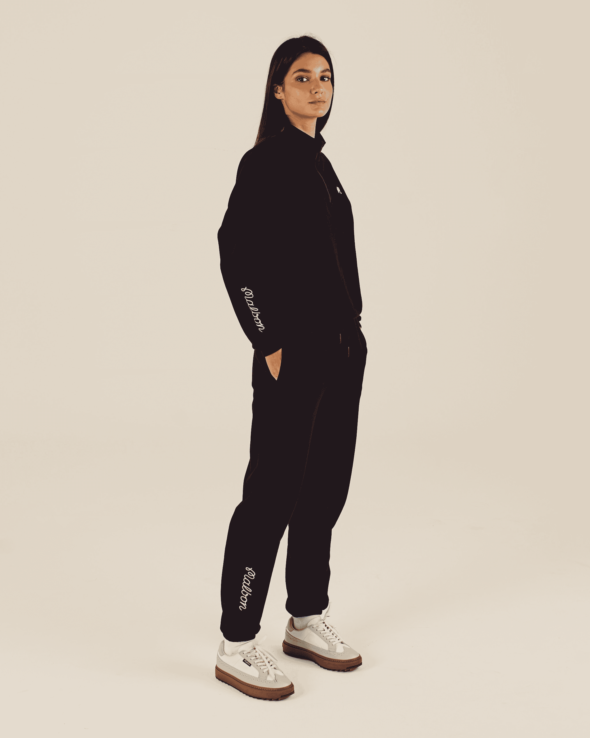 - Ribbed cuffs and waistband create a secure fit that stays in place during movement