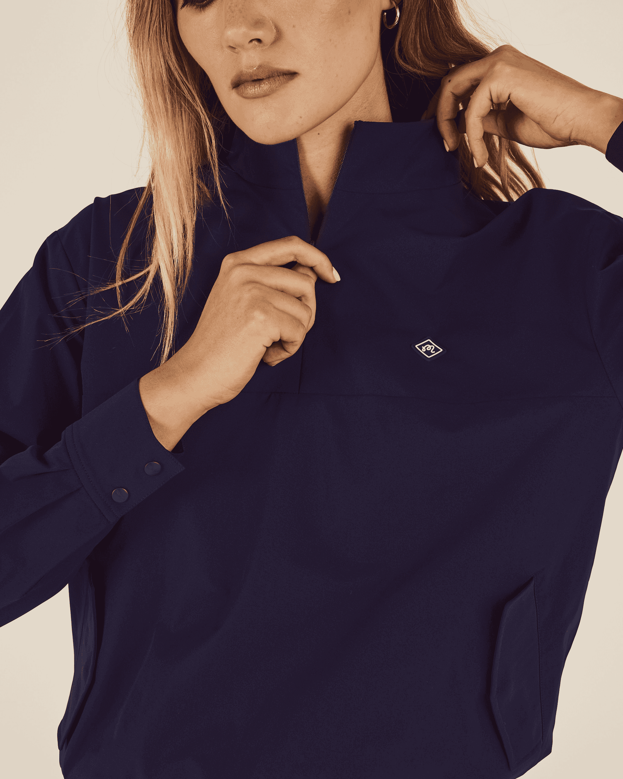 • Stand collar adds structure and can be styled up for a more polished look