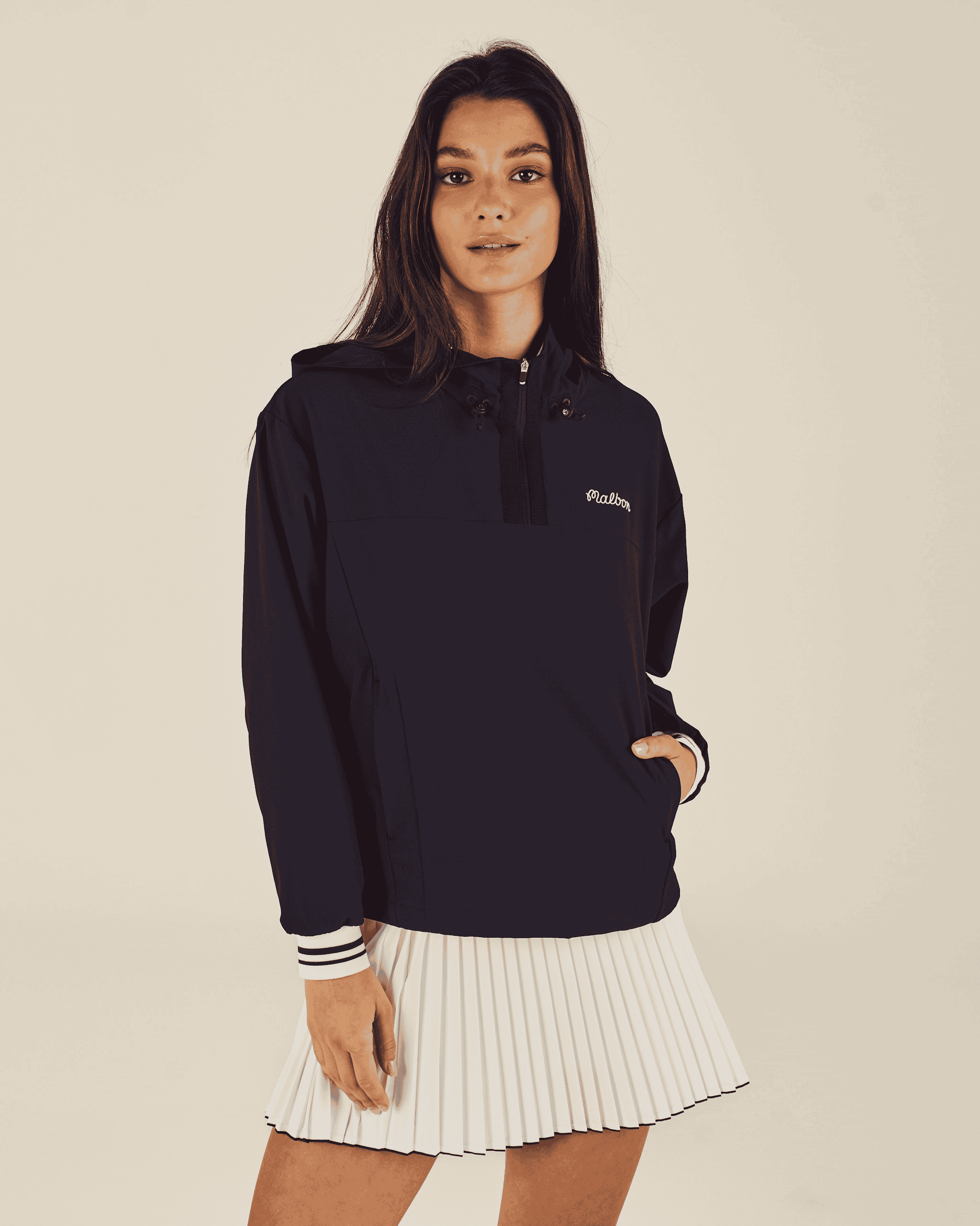 This lightweight anorak combines practical weather protection with a clean, understated aesthetic. The half-zip design and adjustable hood make it easy to adapt to changing conditions throughout your day.