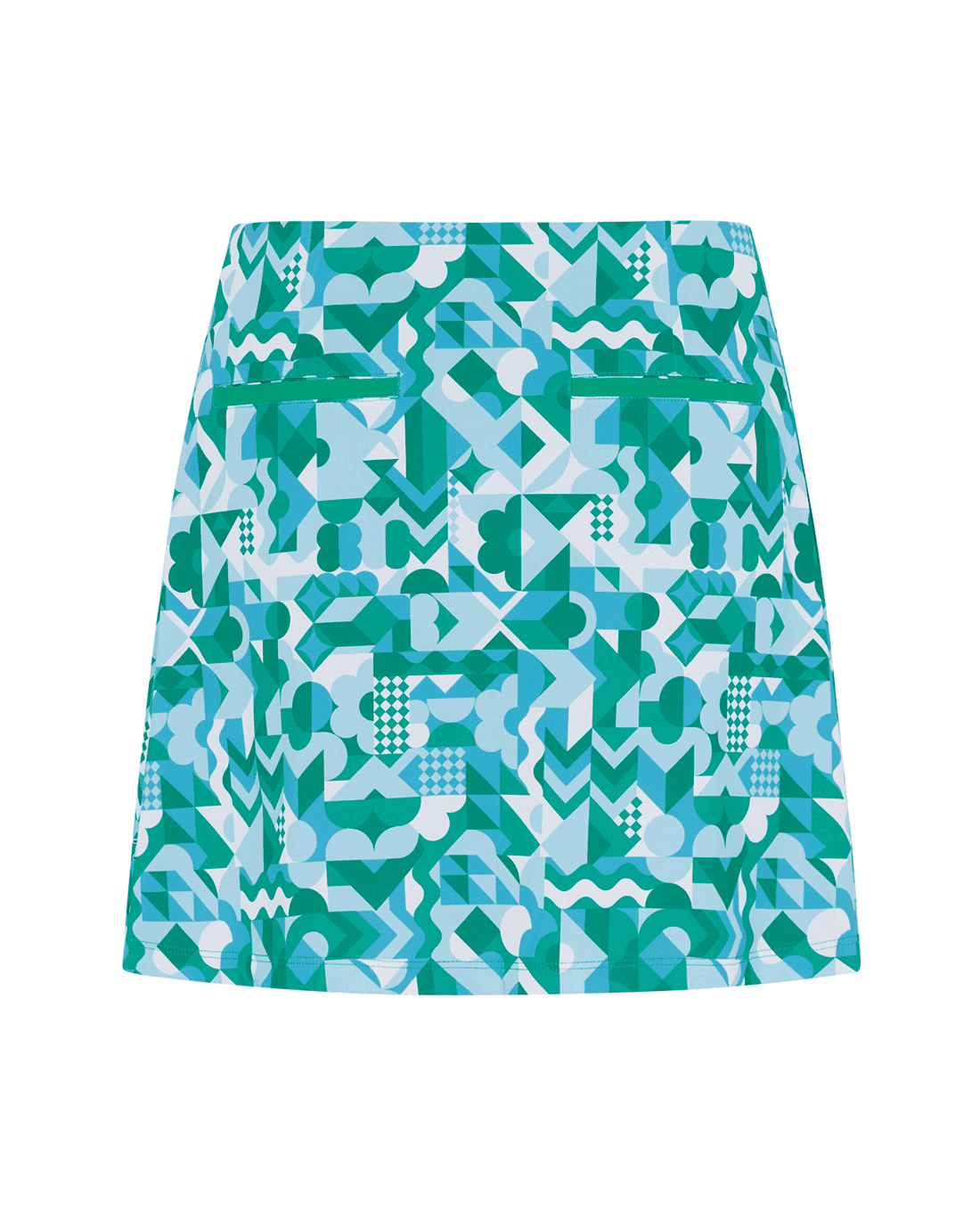 This A-line skort pairs athletic functionality with everyday versatility. The emerald print adds visual interest while maintaining a clean, sporty aesthetic. Built for movement and comfort whether you’re playing golf or running errands.