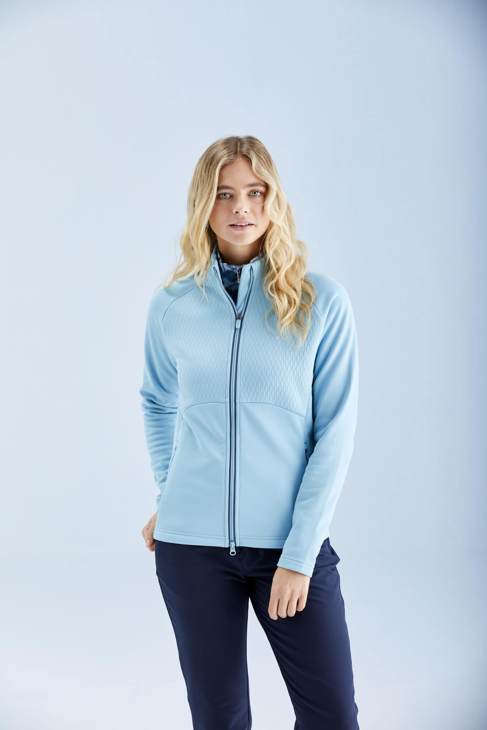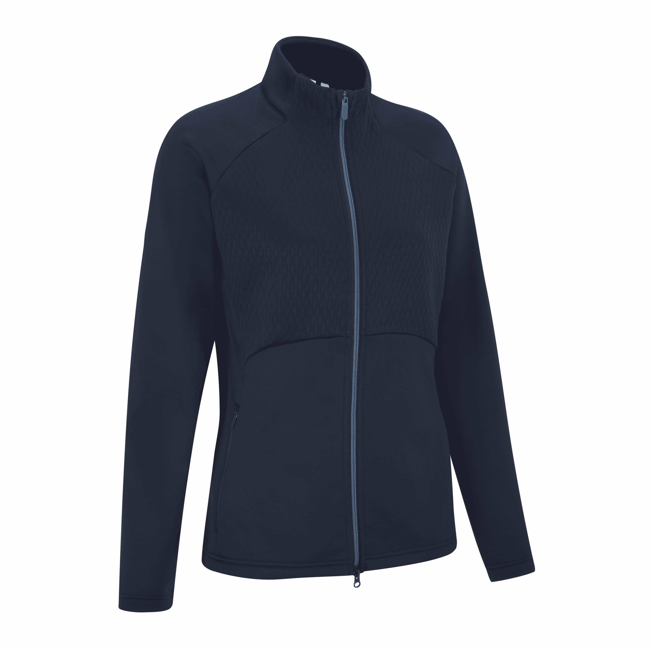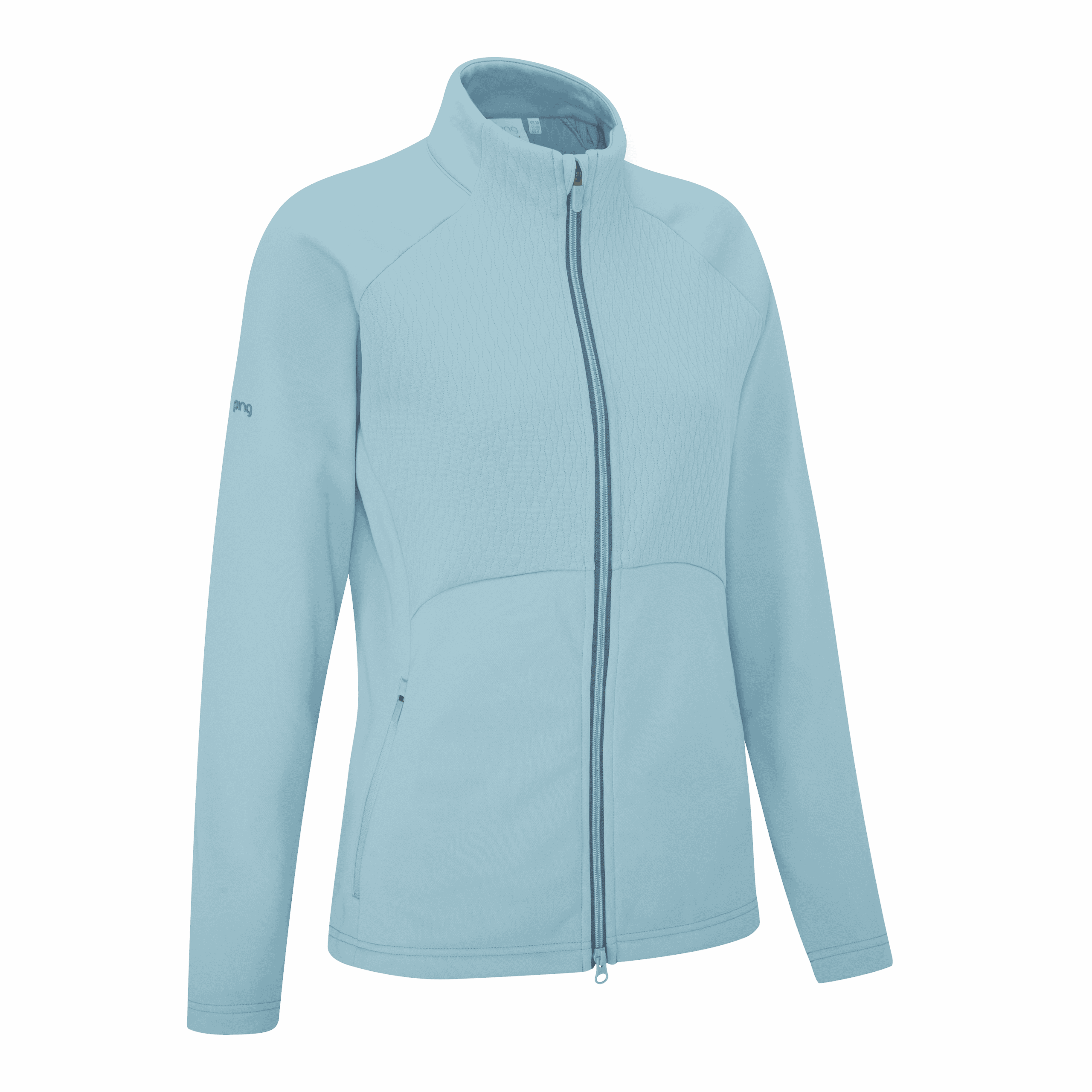 Designed as a timeless layering piece for colder conditions, the Catherine Ladies Full Zip Fleece combines performance with classic style. Featuring a geometric jacquard pattern across the front and back panels, it adds subtle texture to a clean silhouette. The water-resistant finish provides light weather protection, while raglan sleeves and a two-way zip ensure comfort and flexibility throughout wear.