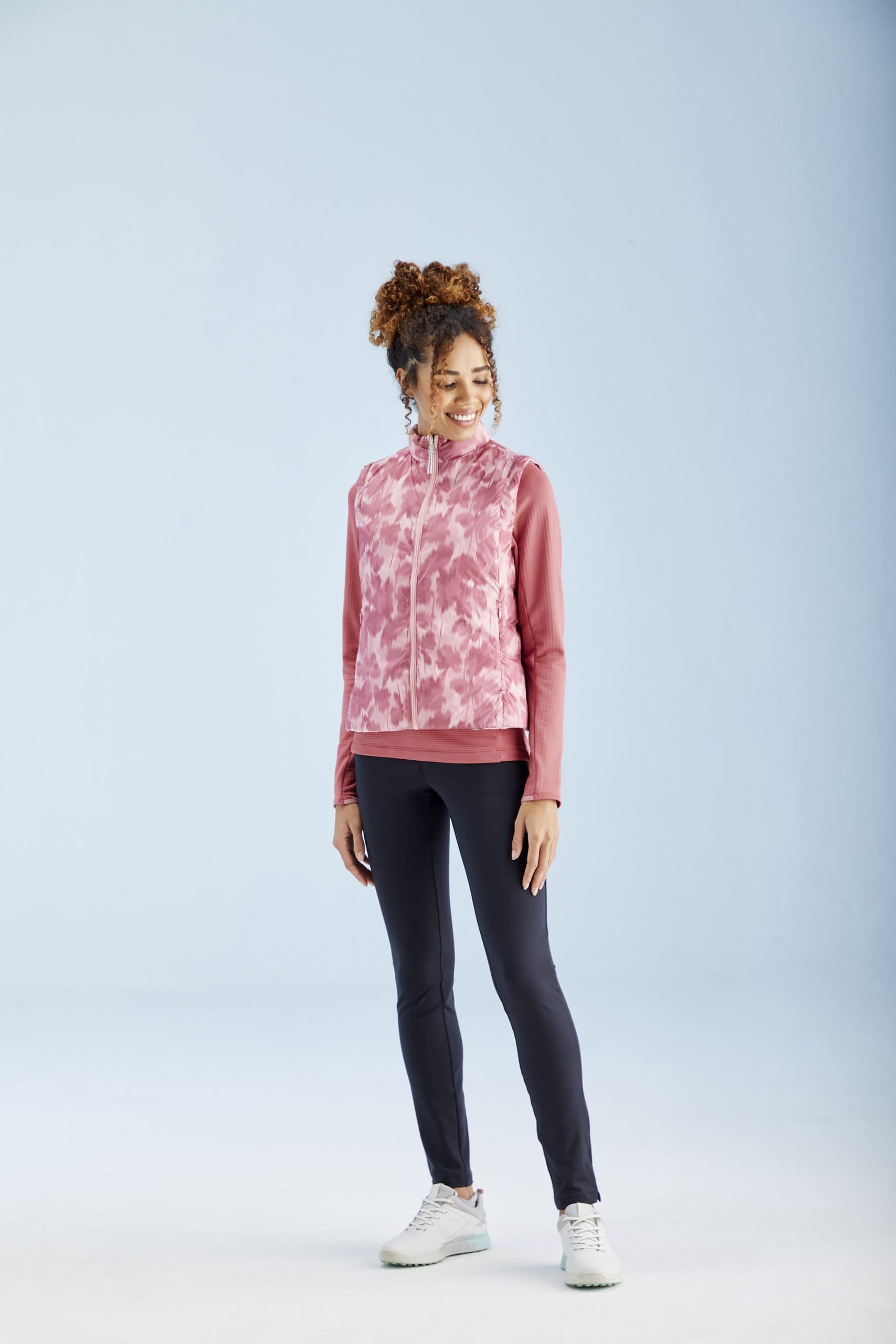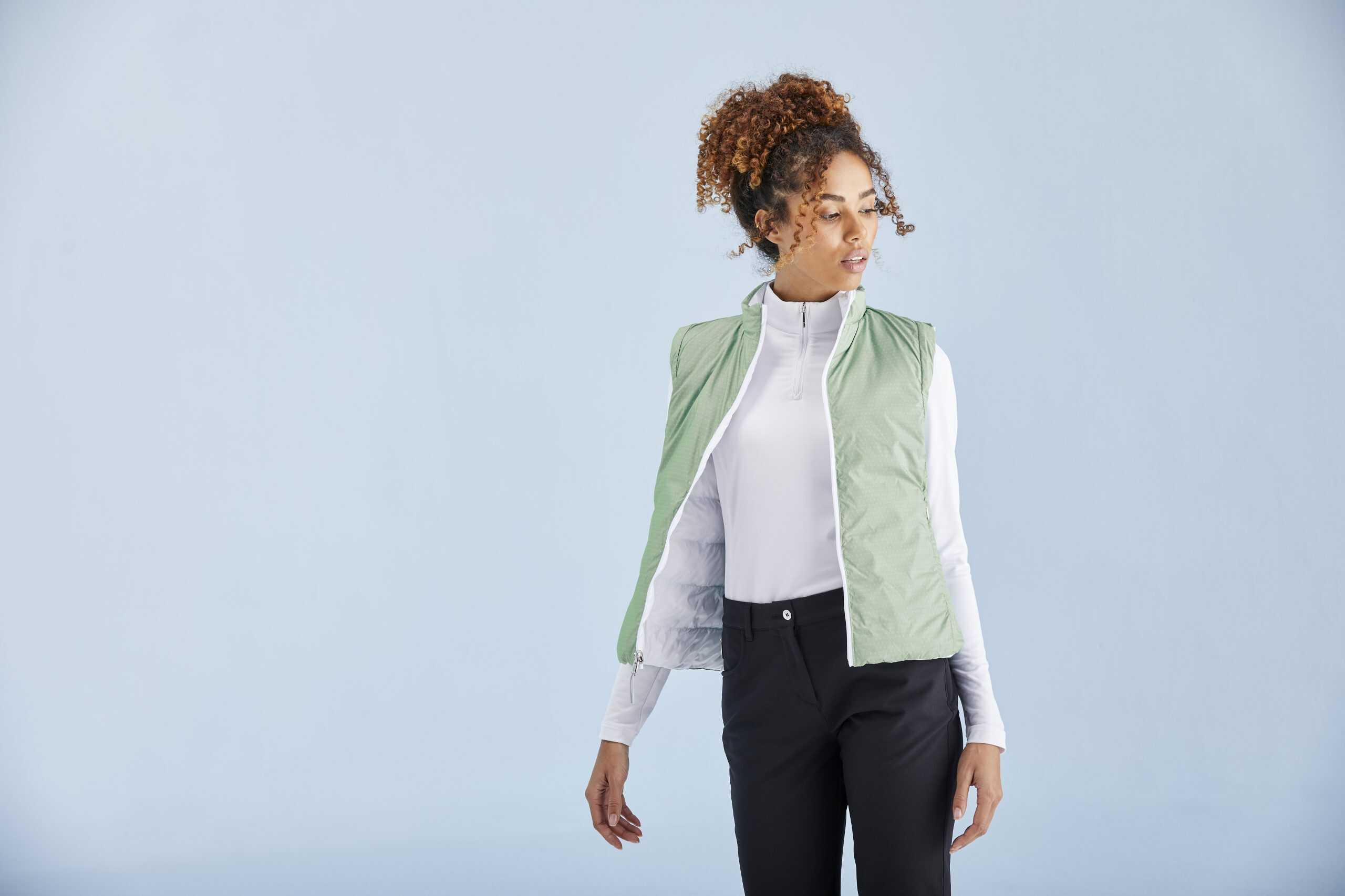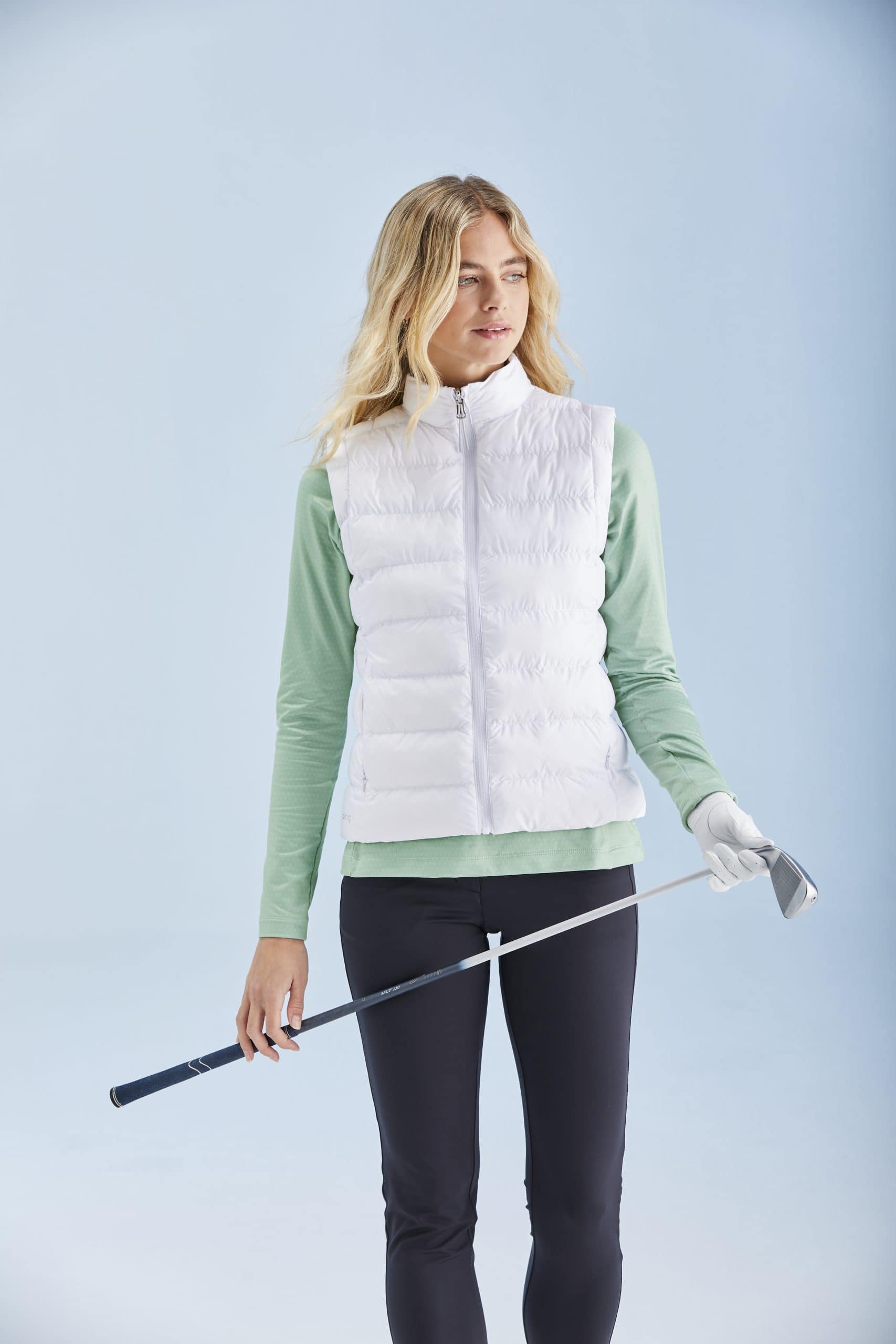 Elevate your cold-weather layering with the Samantha Ladies Insulated Reversible Vest, designed to deliver warmth, comfort, and styling versatility. Featuring soft Clo® Pluma insulation and a water-resistant outer fabric, this lightweight vest offers two distinct looks in one, making it an adaptable essential for changing conditions on and off the course.