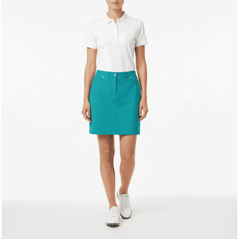 This structured golf skort combines performance and style with a classic A-line silhouette. The zip-fly fastening and four-way stretch polyester construction deliver both comfort and durability. Built for active wear, it maintains its shape and appearance throughout your round.