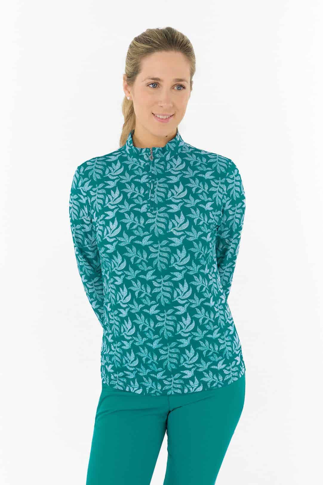 Pure Golf Serenity Long Sleeve Ladies Golf Zip Top – Teal Frondescence