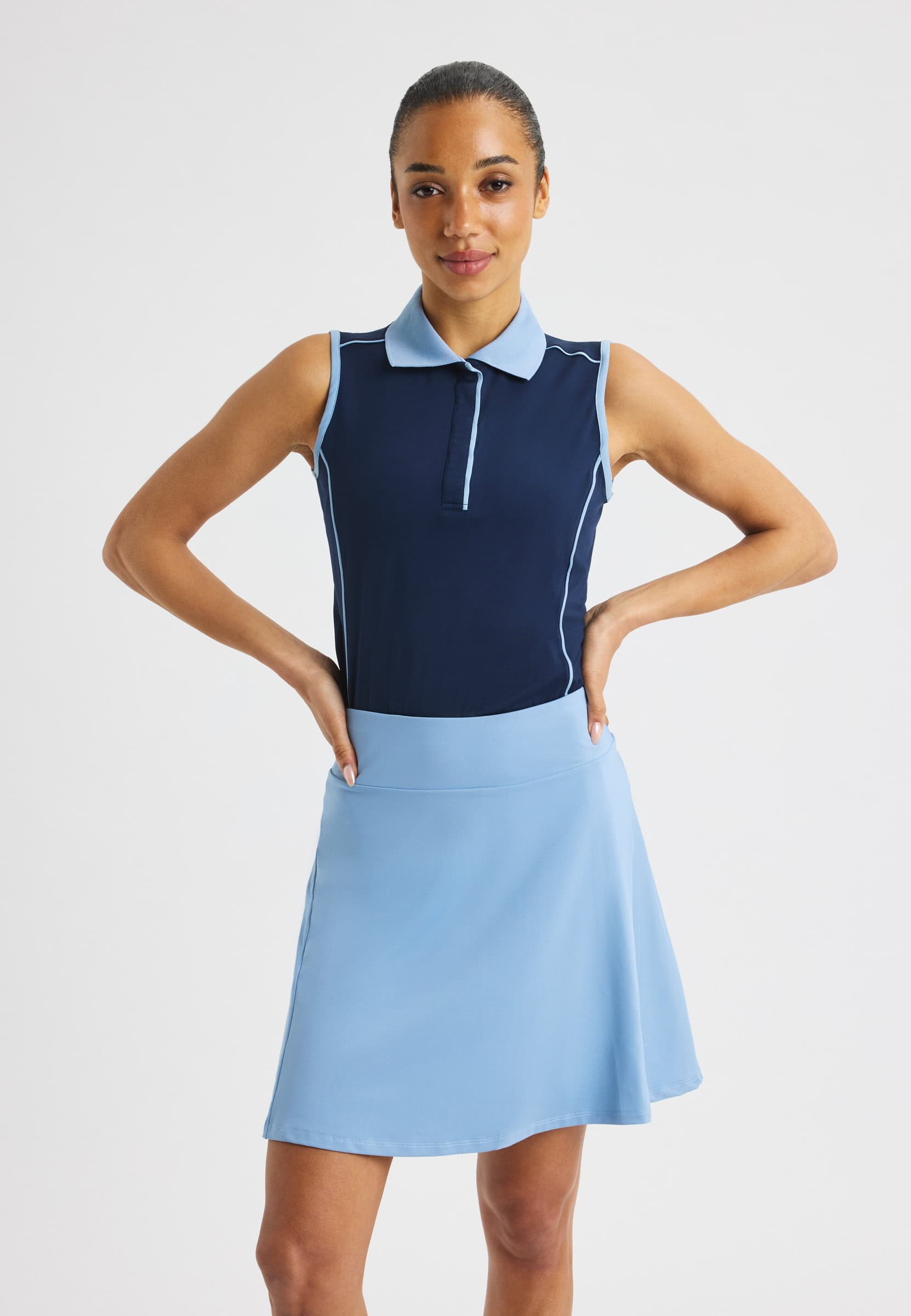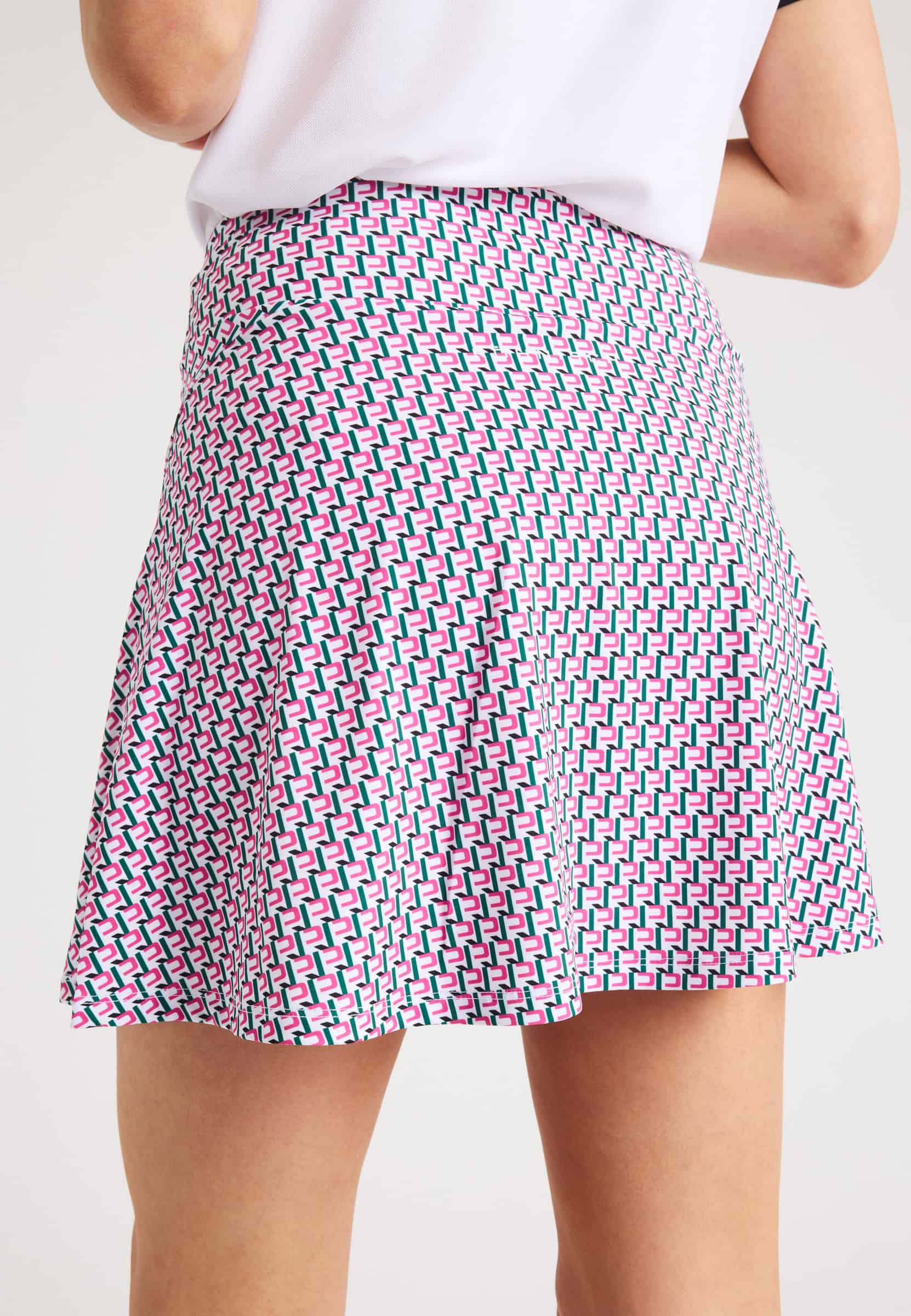 The Luna Skort is a sporty, comfortable pull-on style available in two lengths—Regular (48 cm) and Short (42 cm). Made from a soft, 4-way stretch jersey fabric, it offers ease of movement and all-day comfort on the course. Featuring inner shorts and a convenient zip back pocket, it comes in a range of colours and prints designed to complement your summer wardrobe. Made from 89% recycled polyester for a fully sustainable choice.