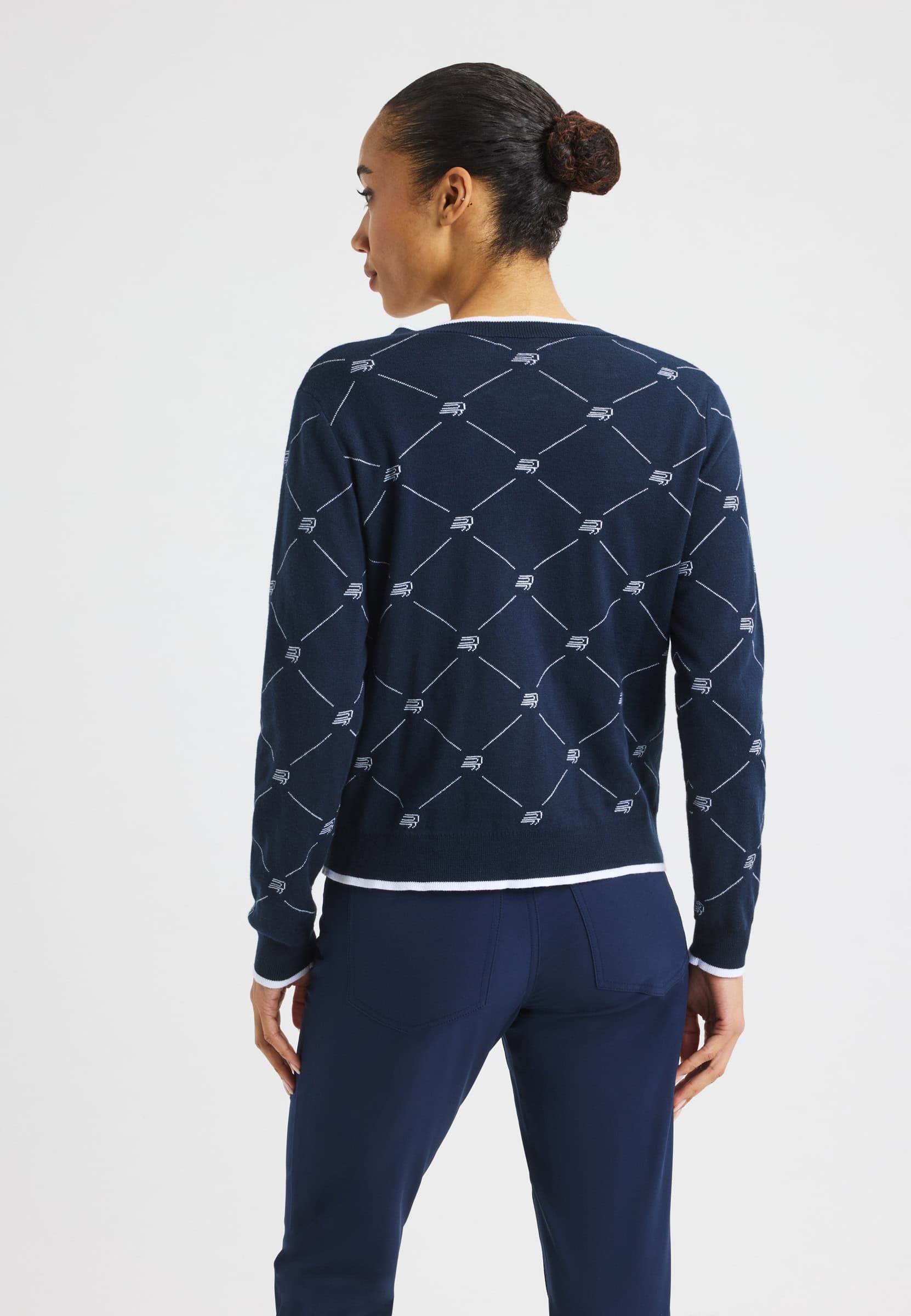 A classic knitted golf cardigan designed for a timeless, preppy look on and off the course. Made from a soft blend of organic and combed cotton, it offers comfortable wear with a refined finish. Featuring a classic button closure and a jacquard-knit Röhnisch pattern, this regular-fit cardigan is a fully sustainable choice.