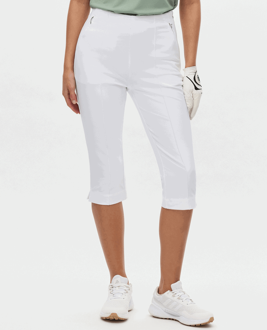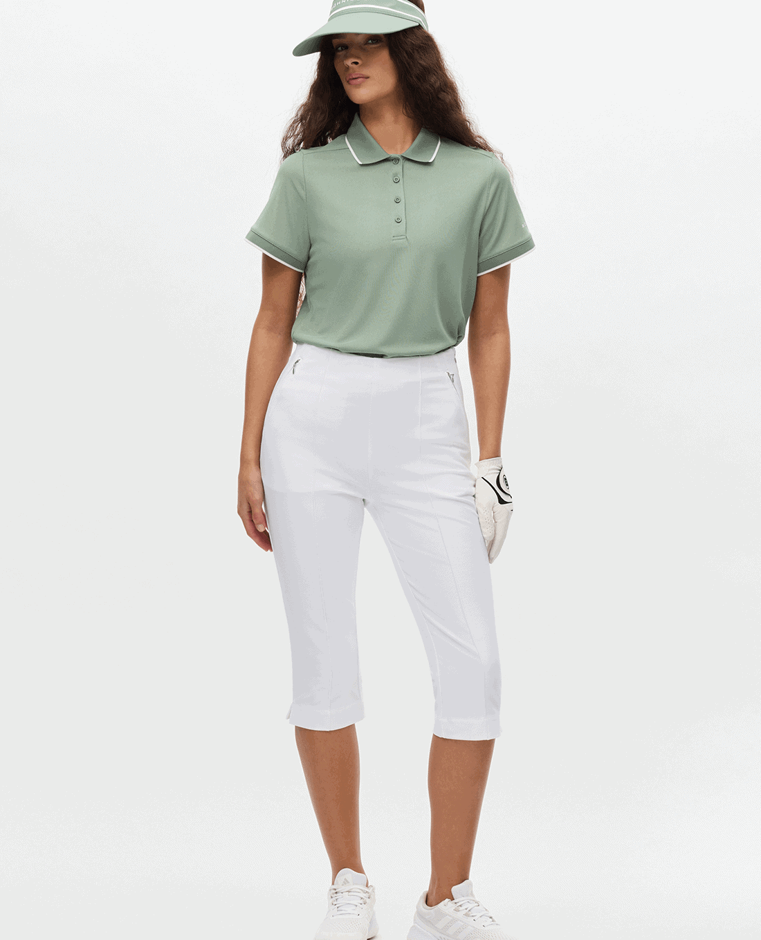 These performance capri trousers combine a tailored appearance with technical functionality for active wear. The slim silhouette and regular waist create a flattering fit that transitions easily from course to clubhouse.