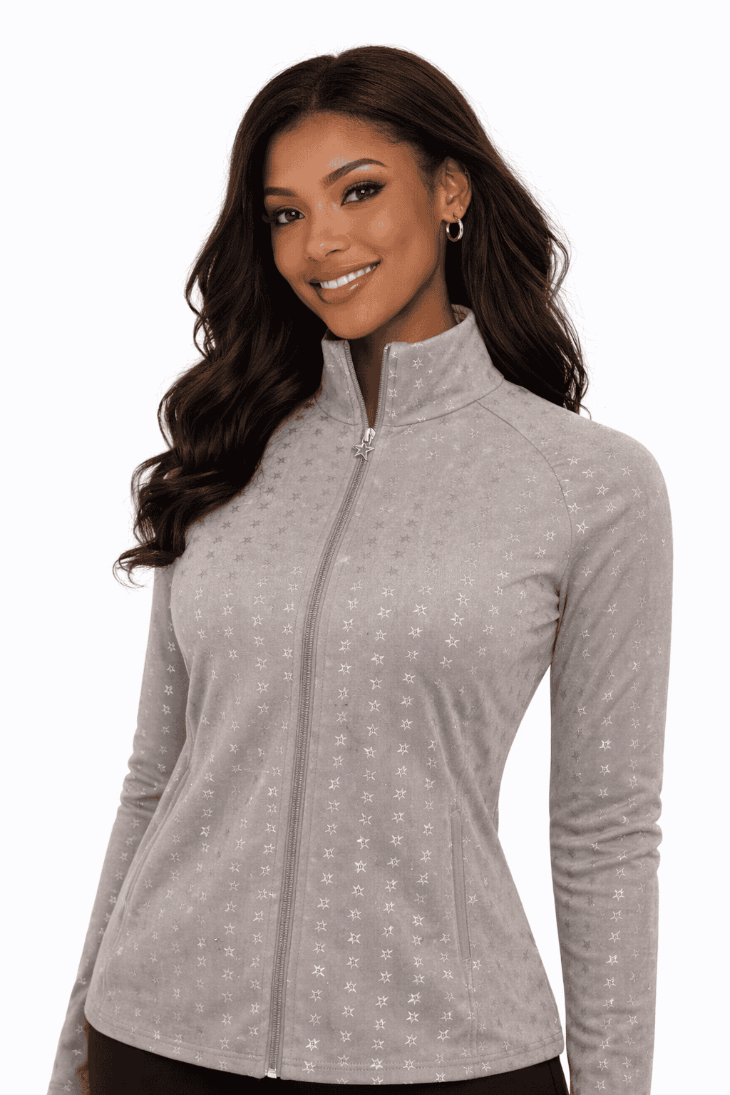 This zip-up jacket combines technical performance with everyday style. Made from brushed tech jersey with a fleece lining, it’s designed for transitional weather when you need flexible layering options. The reflective star print adds visual interest while serving a practical purpose.
