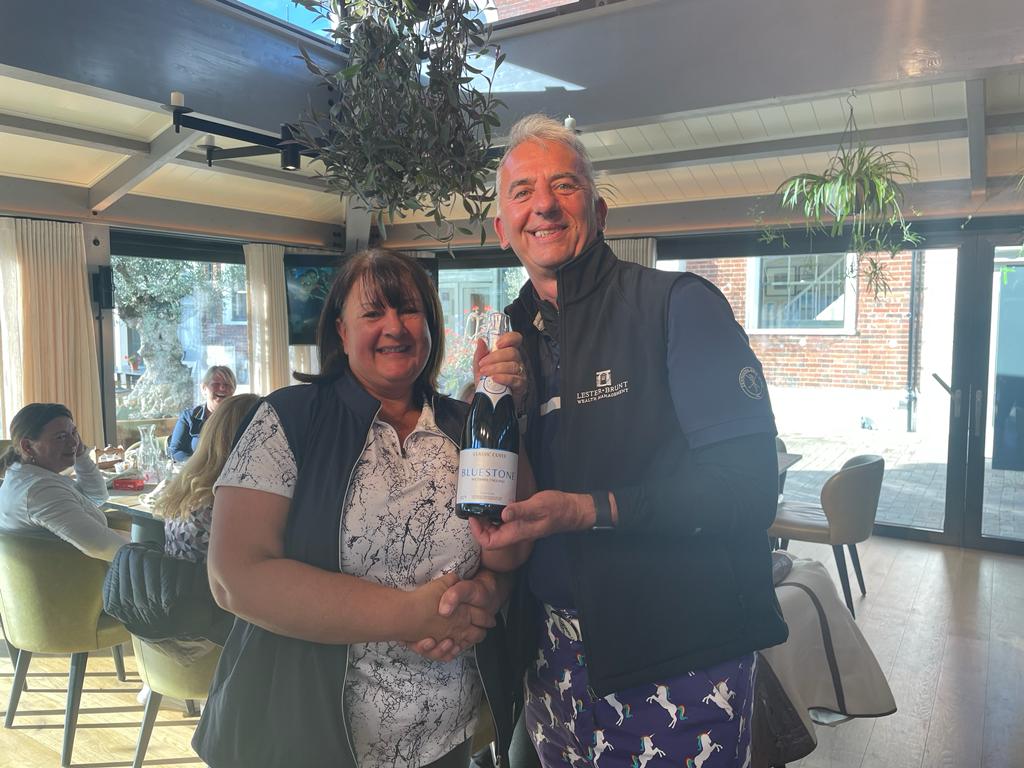 Where Ed missed the green, those players’ names were put into a hat and Suzie King was the lucky person who won a bottle of Bluestone English sparkling wine.
