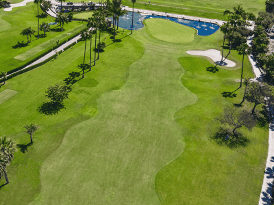 This picturesque course, designed by Enrique Canales Busquets and opened in 2001, lies only a few minutes from the centre of Marbella in the heart of the Costa del Sol. Its beautiful setting offers panoramic views down to the Mediterranean and up to the Sierra Blanca mountains. The course was designed to respect the surrounding landscape as much as possible, retaining its original features, as well as the native fauna and vegetation, with fantastic results. In year-round good condition, Santa Clara’s well-manicured fairways are dotted with numerous water hazards and strategically placed bunkers to get you thinking on your way to the course’s generous but speedy greens. [Buggy included]